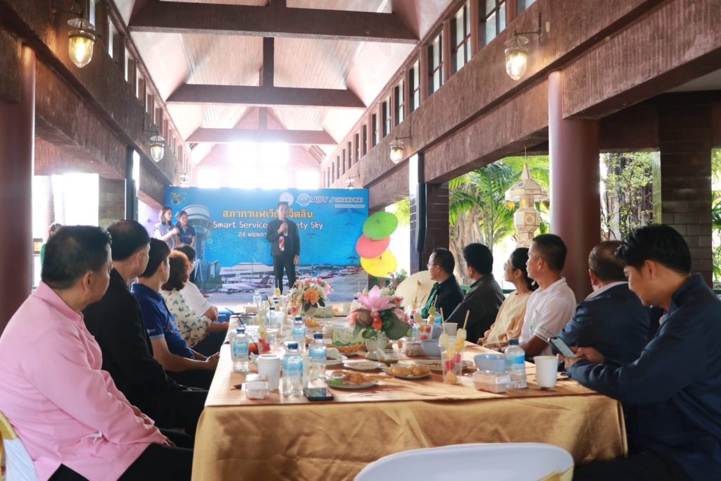 วันที่ 24 พ.ค.66 นายวิจิตต์ แก้วไทรเทียม ผชม.พร้อมด้วยผู้บริหาร และพนักงาน ทชม.ร่วมกิจกรรมงานสภากาแฟเวียงเจ็ดลิน ครั้งที่ 5/2566 ซึ่ง ทชม.ร่วมกับศูนย์ควบคุมการบินเชียงใหม่ เป็นเจ้าภาพจัดขึ้น ณ สโมสรวิทยุการบิน โดยมีนายวีรพงศ์ ฤทธิ์รอด รองผู้ว่าราชการจังหวัดเชียงใหม่ ให้เกียรติร่วมงาน และมีหัวหน้าส่วนราชการ ผู้แทนหน่วยงาน ที่เป็นสมาชิกสภากาแฟ อาทิ มหาวิทยาลัยเชียงใหม่ มหาวิทยาลัยเทคโนโลยีราชมงคลล้านนา สวนสัตว์เชียงใหม่ สถานีตำรวจภูธรภูพิงคราชนิเวศน์ และศูนย์ควบคุมไฟป่าเชียงใหม่ เข้าร่วมงาน โอกาสนี้ ผชม.กล่าวถึงการเตรียมพร้อมรองรับผู้โดยสารหลังจากผ่านพ้นสถานการณ์แพร่ระบาดของโรคโควิด-19 โดยนำเทคโนโลยีระบบบริการผู้โดยสารขึ้นเครื่อง (Common Use Passenger Processing System: CUPPS) ซึ่งเป็นการให้บริการแบบ Self-Service Technology เพื่อตอบสนองพฤติกรรมการเดินทางวิถีปกติรูปแบบใหม่ (New Normal) ของผู้ใช้บริการในอนาคต ภายใต้แนวคิด Smart Service & Safety Sky