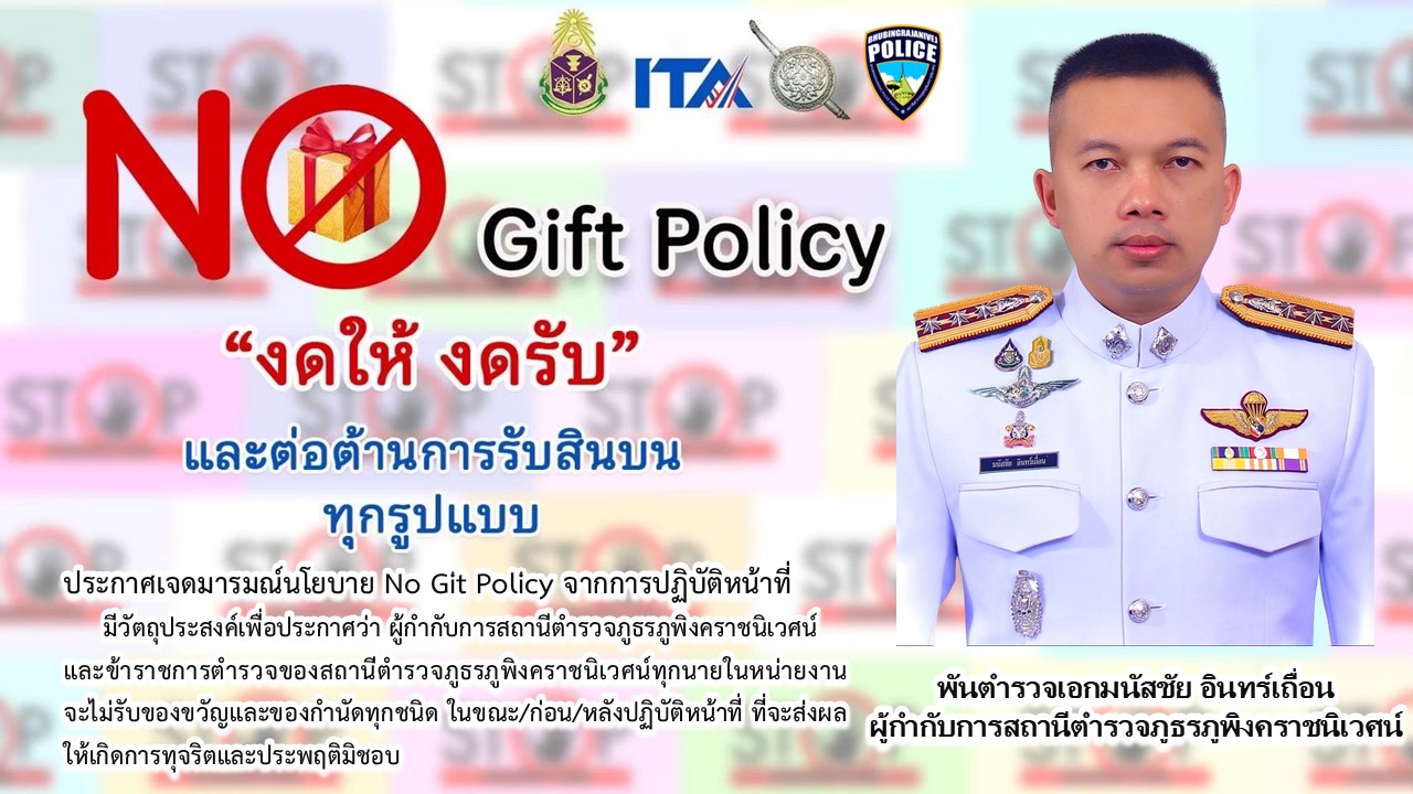 เรื่อง การขับเคลื่อนนโยบาย No Gift Policy จากการปฏิบัติหน้าที่ของตำรวจ