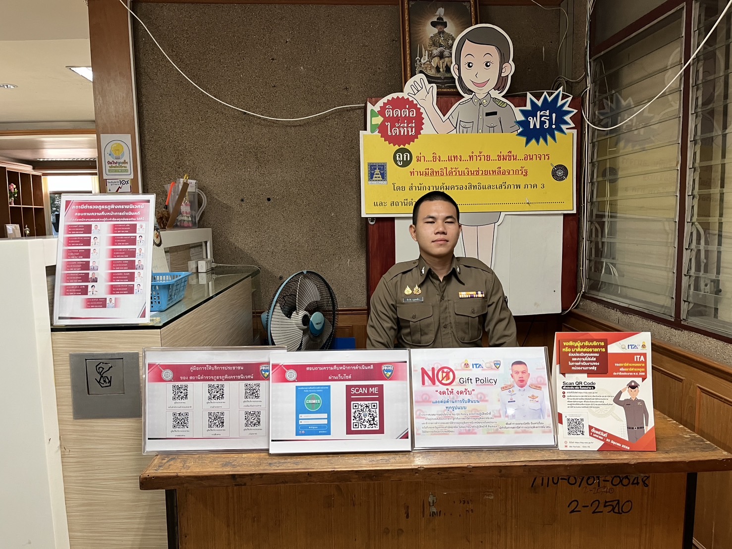 ภาพการเผยแพร่ นโยบายต่อต้านการรับสินบน (Anti-Bribery Policy) ของสถานีตำรวจภูธรภูพิงคราชนิเวศน์ และ นโยบาย (No Gift Policy) ณ จุดบริการและจุดประชาสัมพันธ์ ประจำปีงบประมาณ พ.ศ.2568