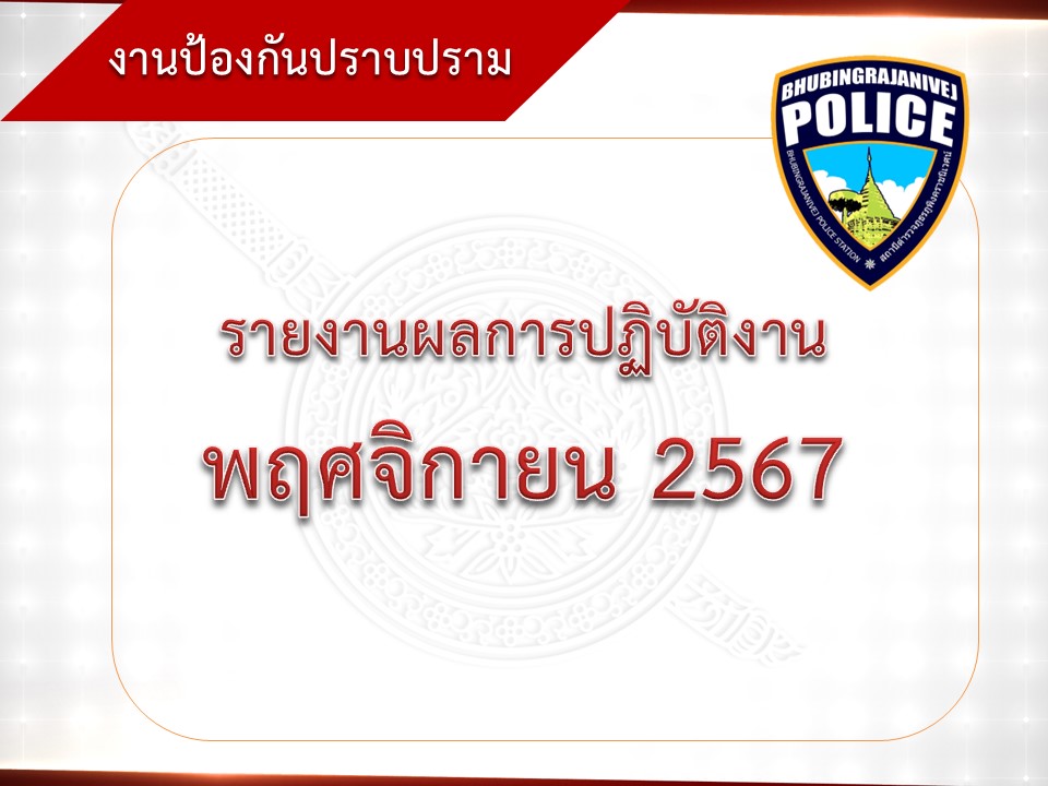 ผลการปฏิบัติงานป้องกันปราบปราม เดือนพฤศจิกายน 2567