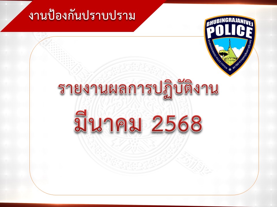ผลการปฏิบัติงานป้องกันปราบปราม เดือนมีนาคม 2568