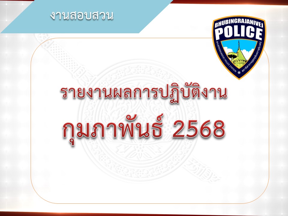 ผลการปฏิบัติงานสอบสวน ประจำเดือนกุมภาพันธ์ 2568