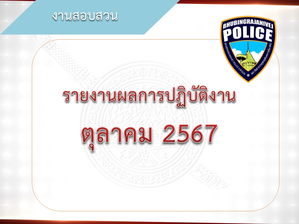 ผลการปฏิบัติงานสอบสวน ประจำเดือนตุลาคม 2567