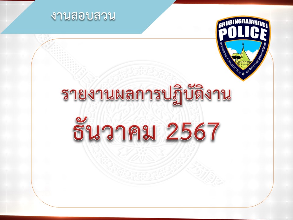 ผลการปฏิบัติงานสอบสวน ประจำเดือนธันวาคม 2567