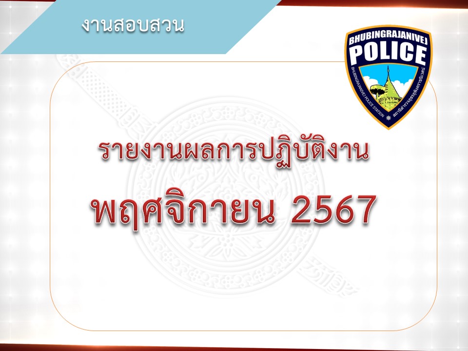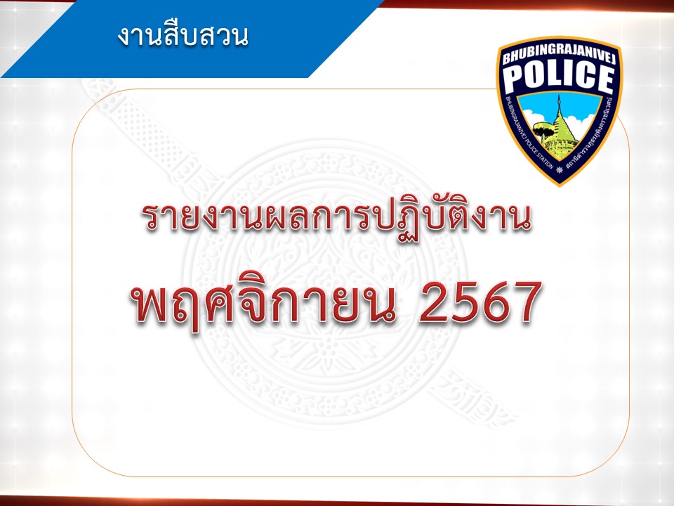 ผลการปฏิบัติงานสืบสวน เดือนพฤศจิกายน 2567