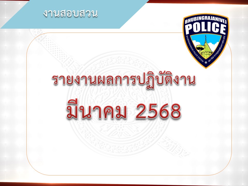 ผลการปฏิบัติงานสอบสวน ประจำเดือนมีนาคม 2568