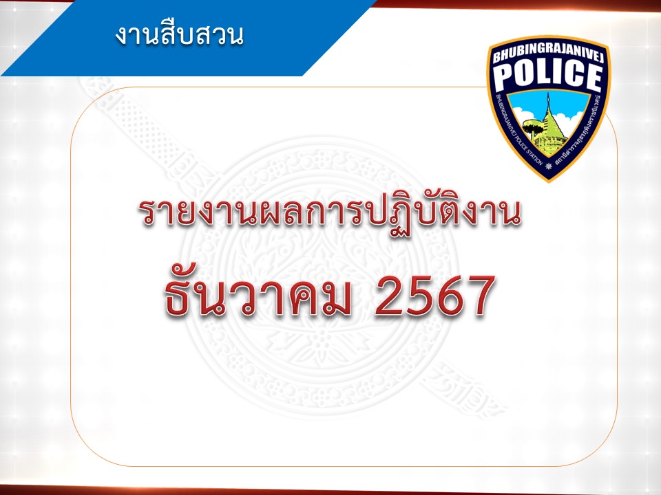 ผลการปฏิบัติงานสืบสวน เดือนธันวาคม 2567