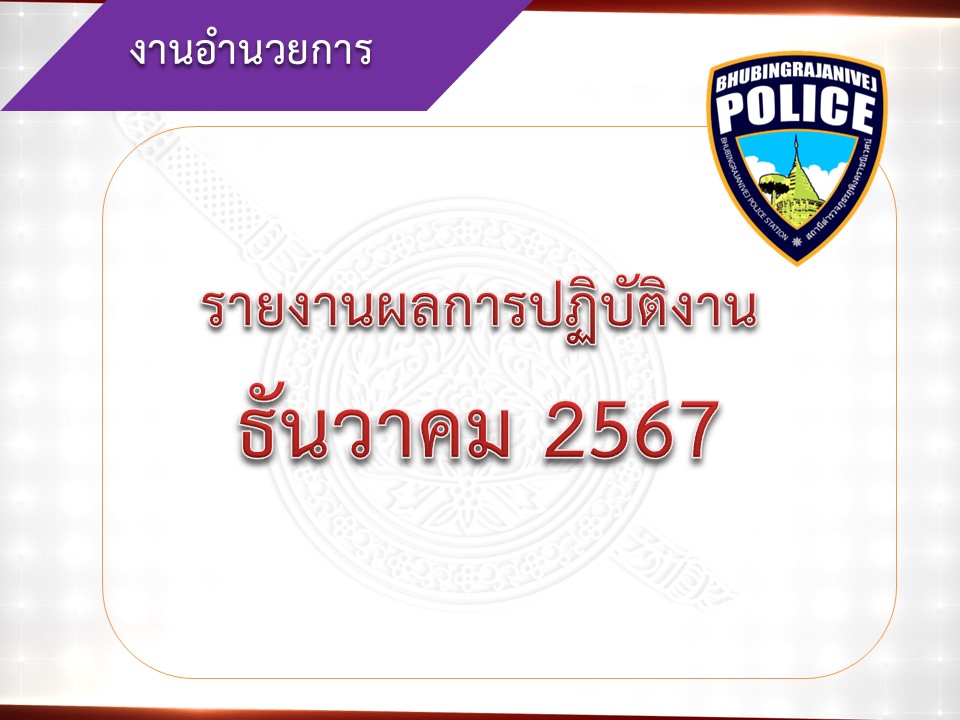 ผลการปฏิบัติงานอำนวยการ เดือนธันวาคม 2567