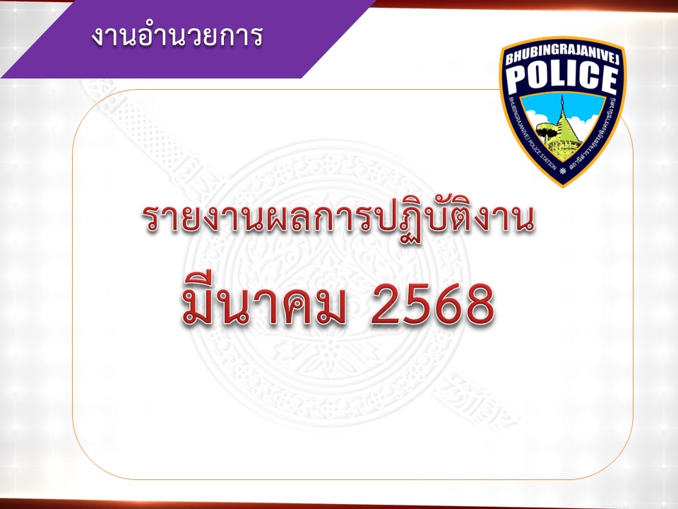 ผลการปฏิบัติงานอำนวยการ เดือนมีนาคม 2568
