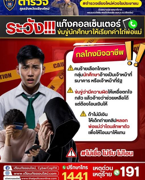 ระวัง!!! แก๊งคอลเซ็นเตอร์ ข่มขู่นักศึกษาให้เรียกค่าไถ่พ่อแม่