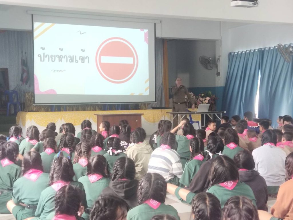 🔹จัดกิจกรรม บรรยายให้ความรู้ในหัวข้อ พิษภัยและโทษของ ยาเสพติด,บุหรี่ไฟฟ้า,การป้องกันตัวเองการคุกคามทางเพศ กฎหมายจราจรเบื้องต้น และ อาชญากรรมออนไลน์แก่นักเรียน ชั้น ม.1-ม.3