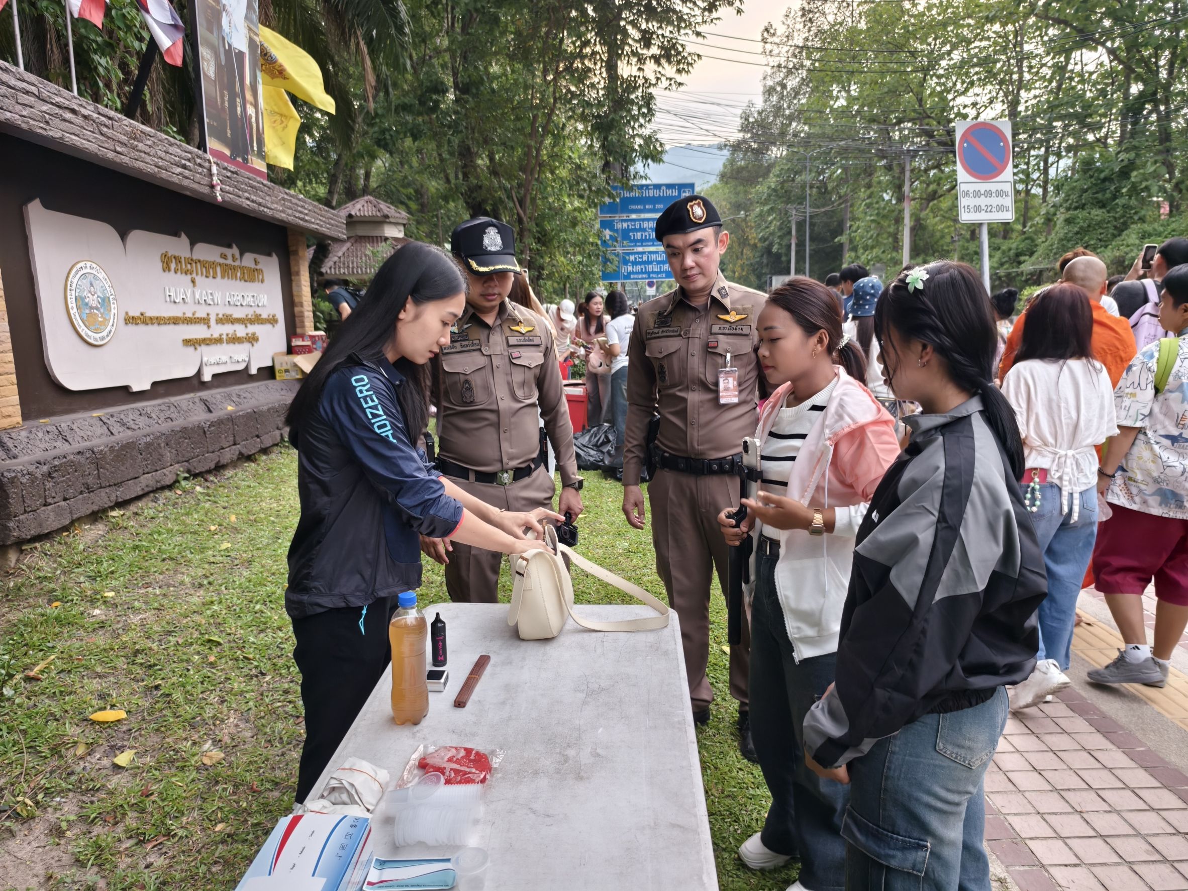 🎤 พร้อมกำลังชุด ชป. สภ.ภูพิงค์ ร้อยเวร 20, สายตรวจ และ ชุดจิตอาสาฯ รวมกำลัง 20 นาย ได้ร่วมกันตั้งจุดตรวจคัดกรองอาวุธ จุดสกัดป้องกันรถแข่ง และ เพื่อป้องกันเหตุ เนื่องในงานประเพณีเตียวขึ้นดอย 2568 บริเวณด้านหน้า สภ.ภูพิงค์ฯ