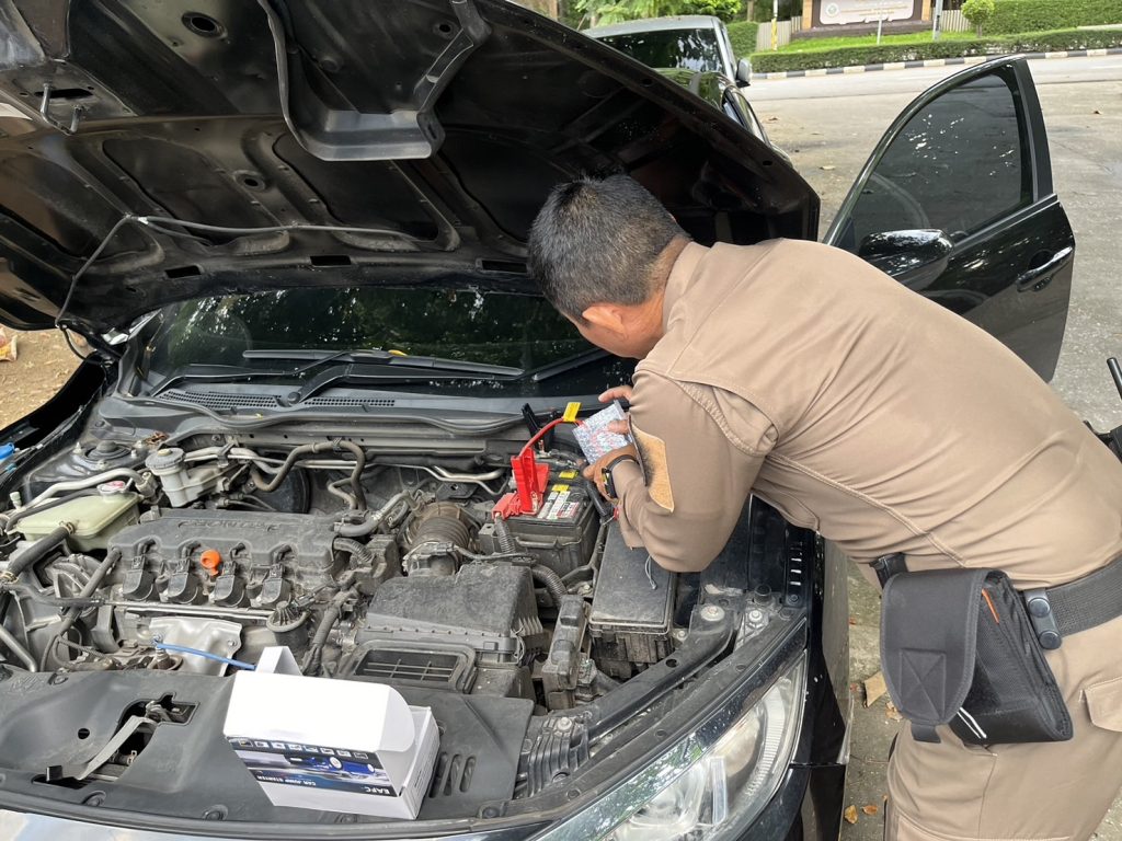 ว.4 ช่วยเหลือจั๊มแบตรถให้ประชาชน บริเวณหน้า สภ.ภูพิงค์ฯ ช่วงนี้สตาร์ทติดไปต่อได้เรียบร้อย
