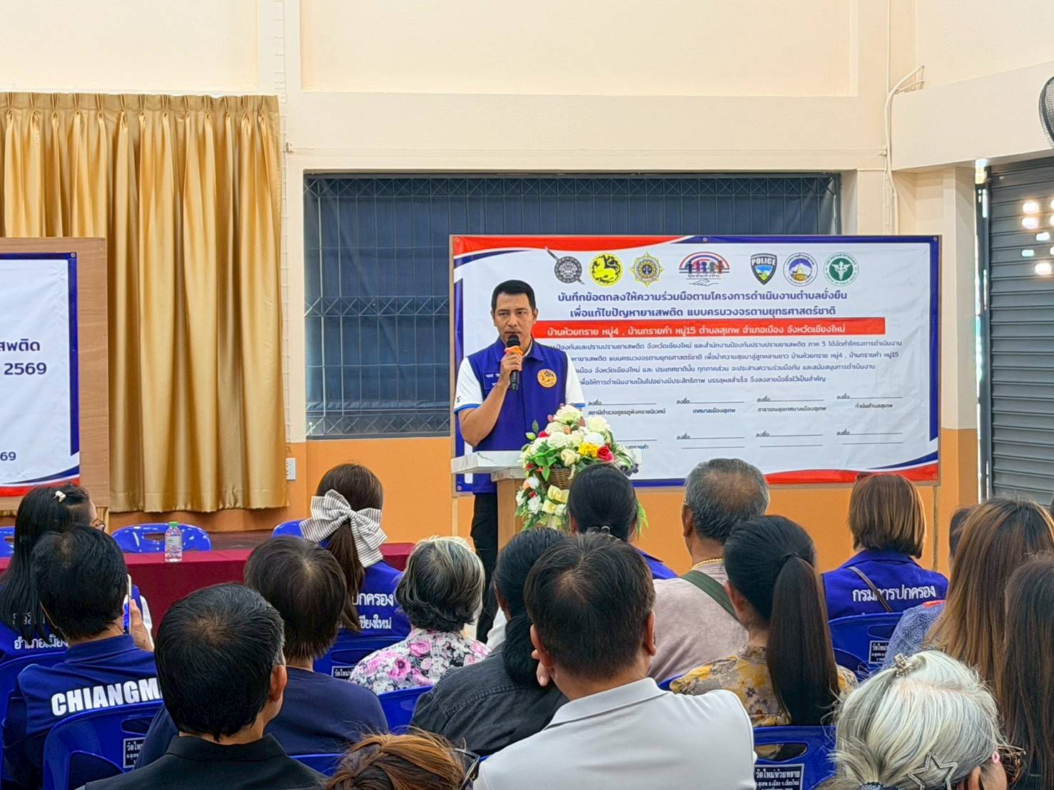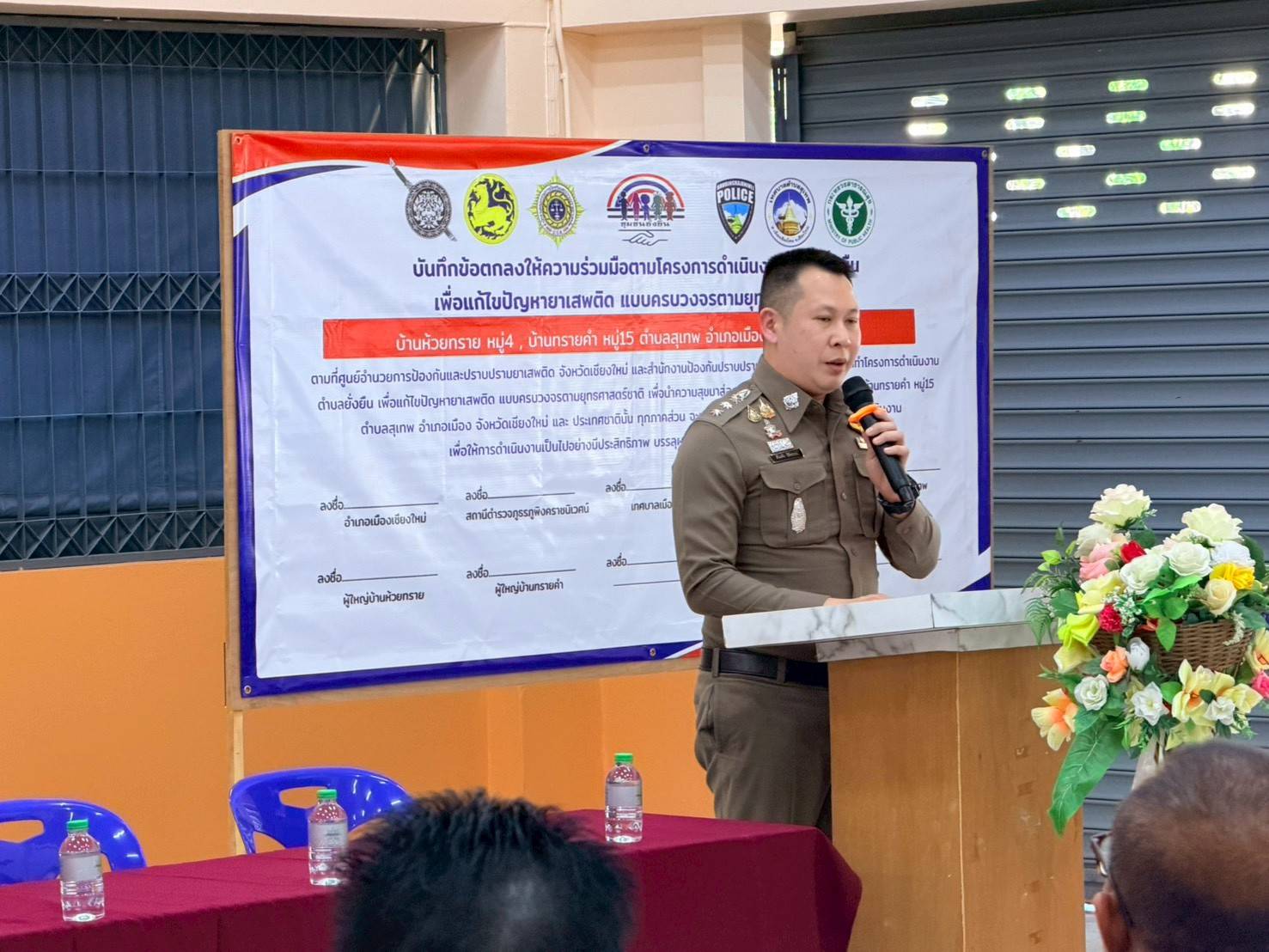 🔹โดยมีคณะกรรมการหมู่บ้านและ อสม.ประชาชนหมู่บ้านเป้าหมายในโครงการร่วมพิธีเปิดและลงนามความร่วมมือ( MOU ) “โครงการตำบลยั่งยืนเพื่อแก้ไขปัญหายาเสพติดแบบครบวงจรตามยุทธศาสตร์ชาติ ” ตามนโยบายของรัฐบาล ในตำบลสุเทพ อำเภอเมืองเชียงใหม่ จังหวัดเชียงใหม่
