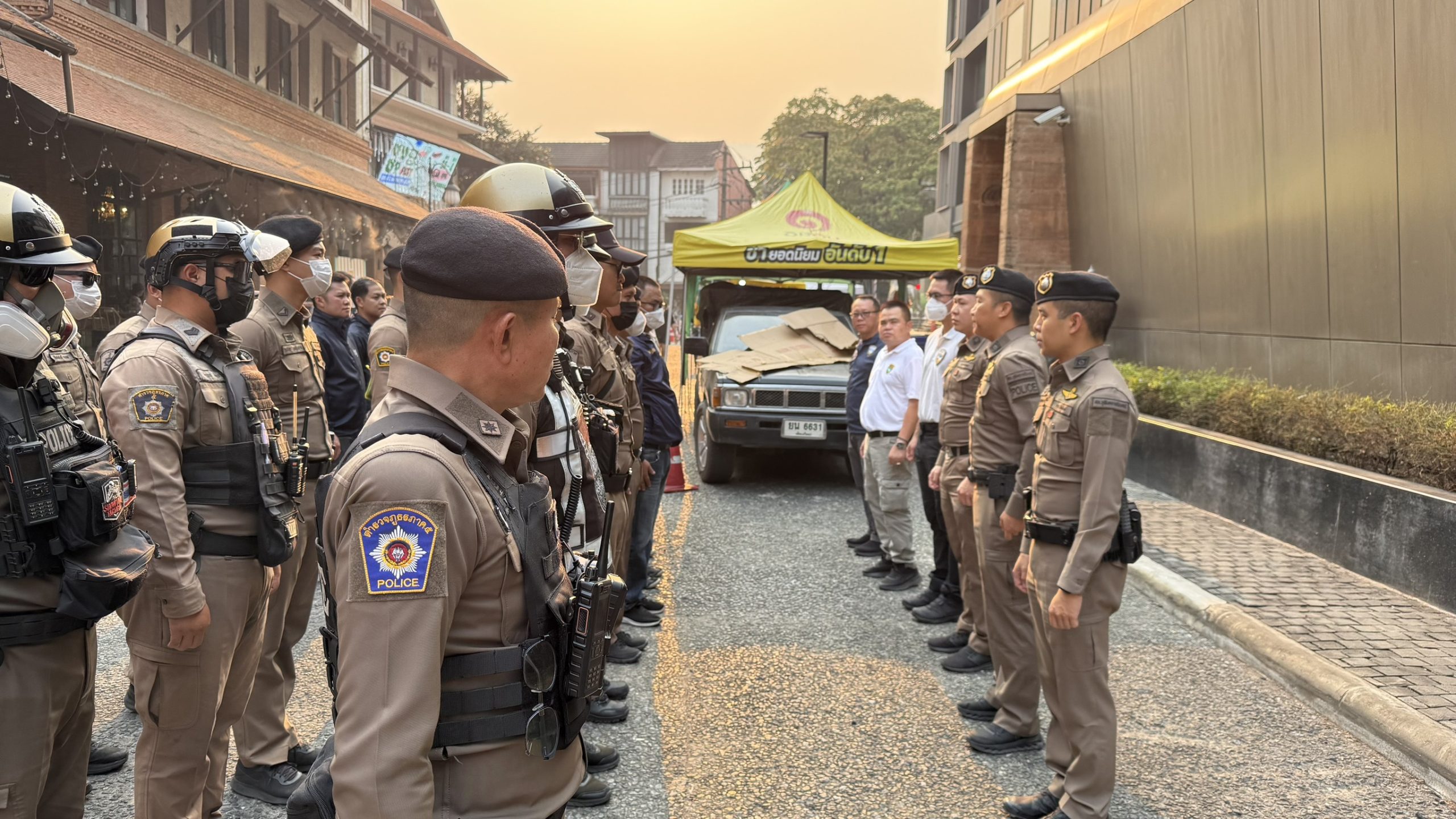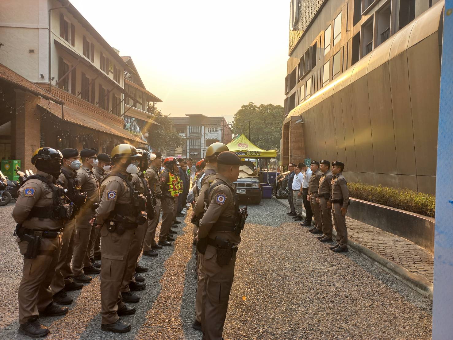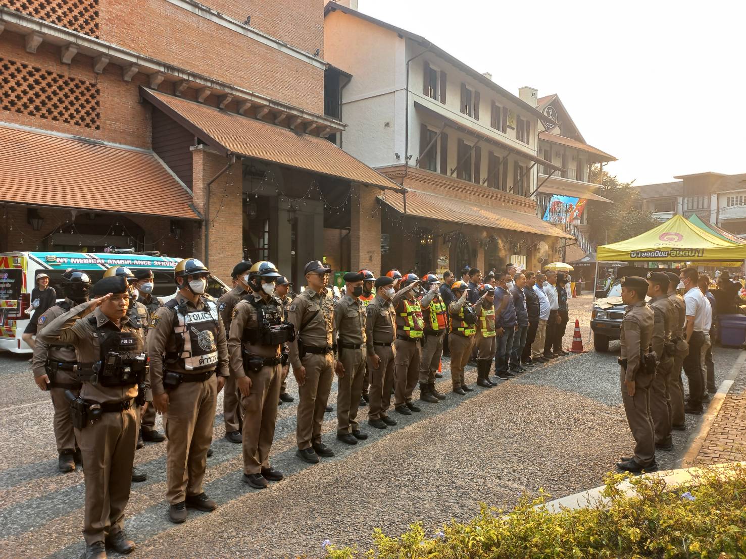 พร้อมด้วยข้าราชการตำรวจประจำจุดตรวจร่วมปล่อยเเถวบริเวณโครงการ one nimman เพื่อดูเเลความปลอดภัยนักท่องเที่ยวเเละป้องกันเหตุเกี่ยวกับทรัพย์ พร้อมกำชับดังต่อไปนี้