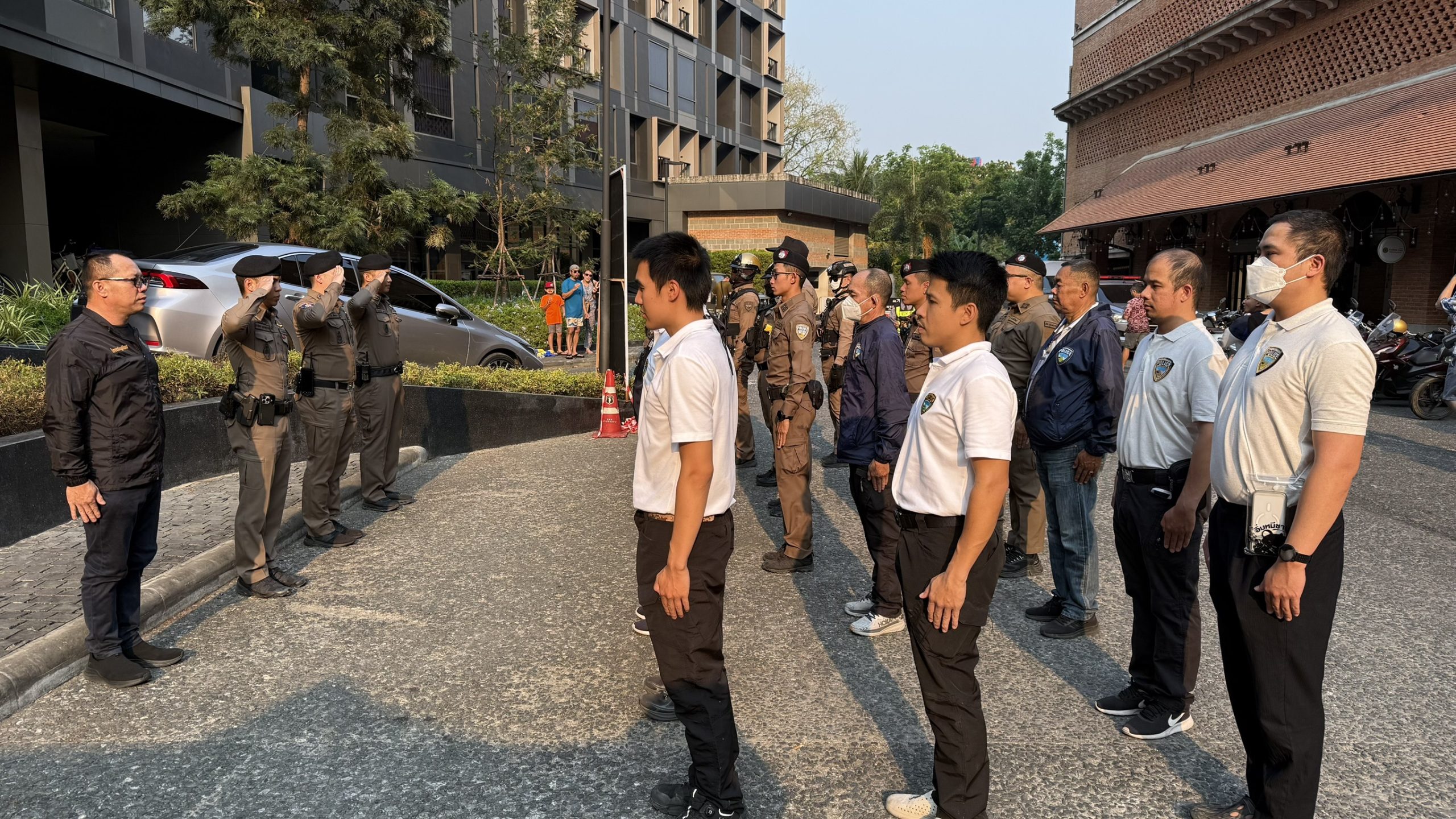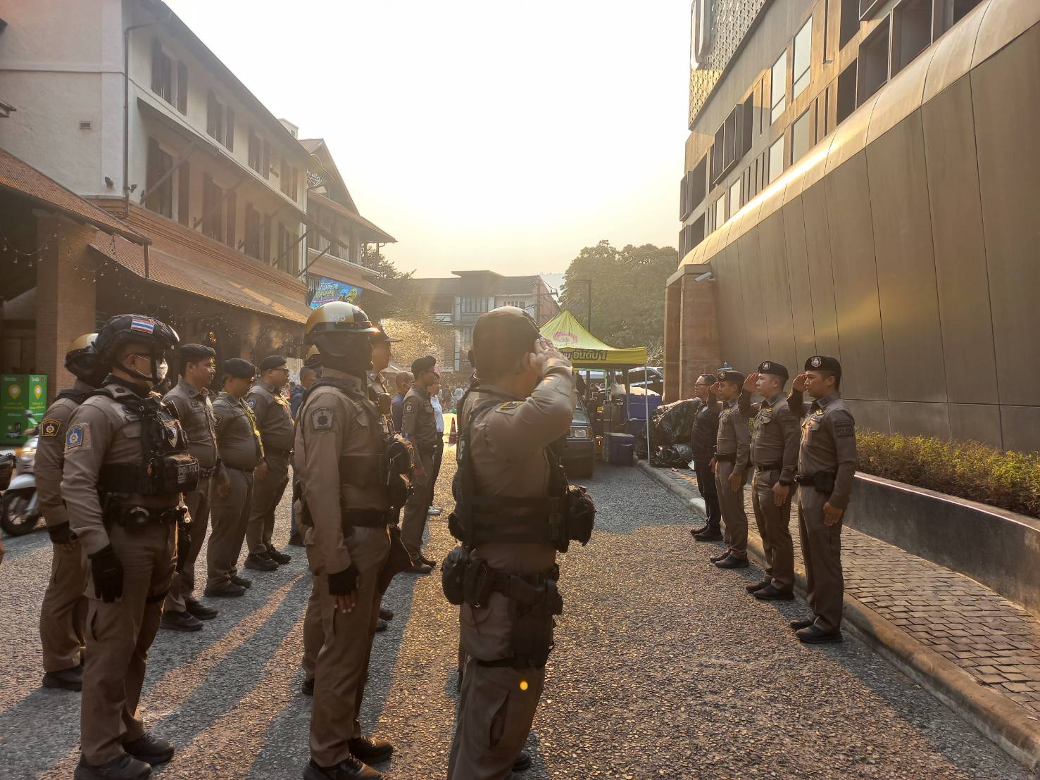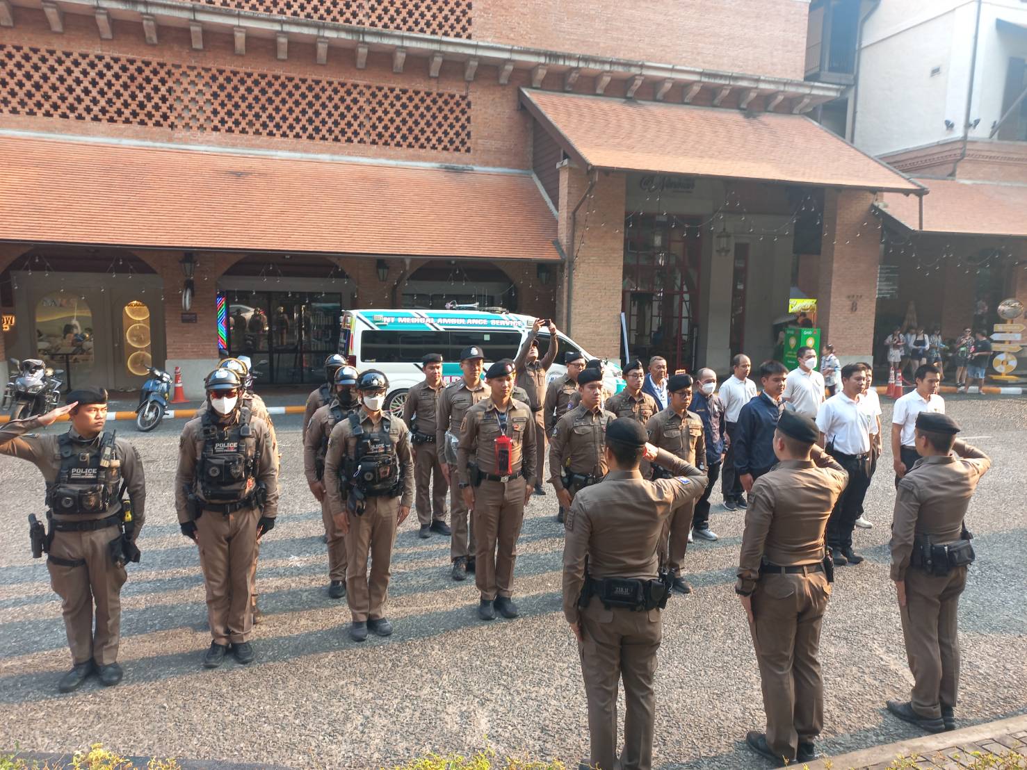 พร้อมด้วยข้าราชการตำรวจประจำจุดตรวจร่วมปล่อยเเถวบริเวณโครงการ one nimman เพื่อดูเเลความปลอดภัยนักท่องเที่ยวเเละป้องกันเหตุเกี่ยวกับทรัพย์ พร้อมกำชับดังต่อไปนี้