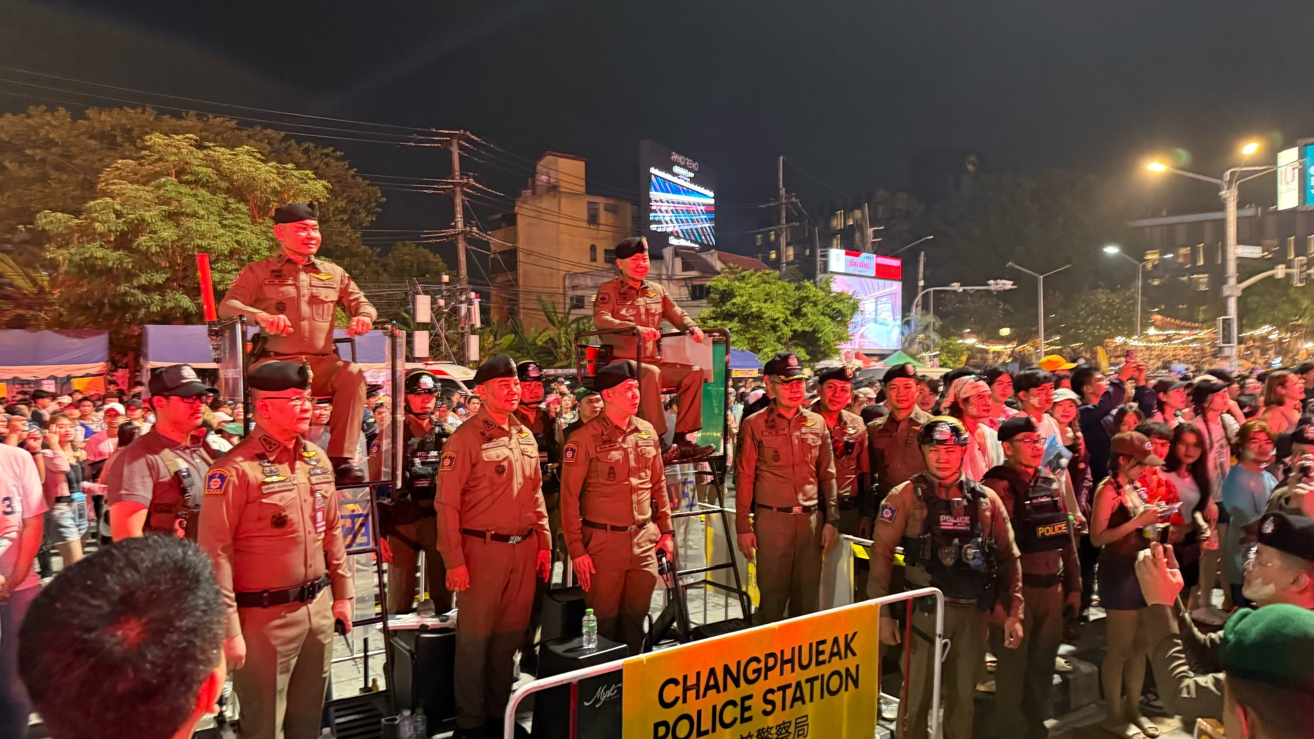ได้เดินทางมาตรวจเยี่ยมบริเวณสถานที่จัดงานสงกรานต์แยกรินคำ พบและ เจ้าหน้าที่ตำรวจ
