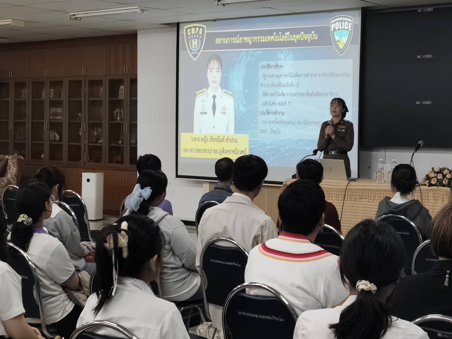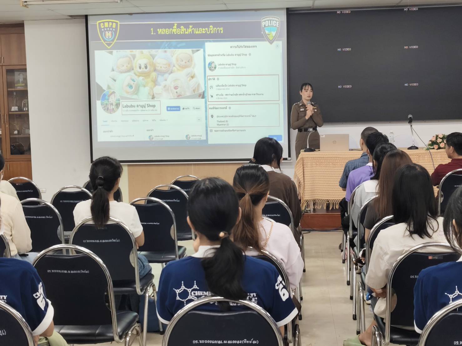 🔹ร่วมบรรยายเตือนภัยเสริมภูมิคุ้มกันไซเบอร์และมิจฉาชีพออนไลน์ เพื่อให้นักศึกษาเกิดความตระหนักรู้เรื่องภัยมิจฉาชีพ ให้แก่นักศึกษาชั้นปีที่ 3 คณะวิทยาศาสตร์ มหาวิทยาลัยเชียงใหม่ จำนวน 100 คน ร่วมรับฟัง