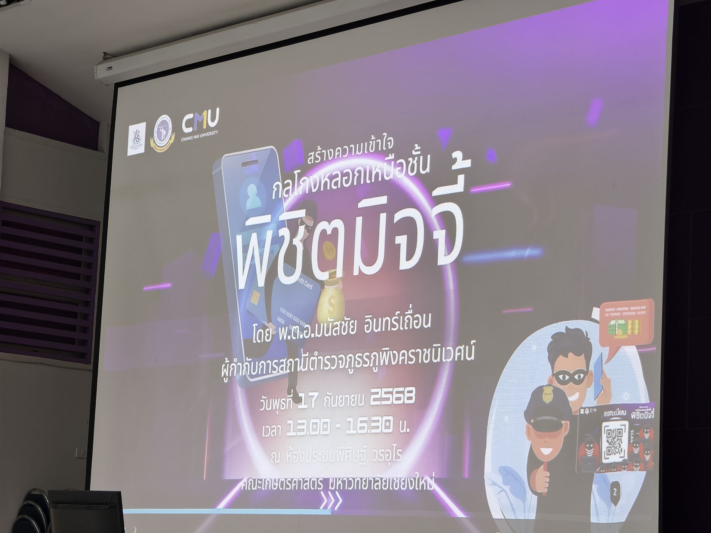 🎤 ร่วมเป็นวิทยากรบรรยายให้ความรู้ในหัวข้อ ” สร้างความเข้าใจ กลโกงหลอกเหนือชั้น พิชิตมิจจี้ ” ให้แก่นักนักศึกษาภาควิชาสัตวศาสตร์ คณะเกษตรศาสตร์ มหาวิทยาลัยเชียงใหม่ ชั้นปีที่ 1-3 จำนวน 300 คน ร่วมรับฟัง