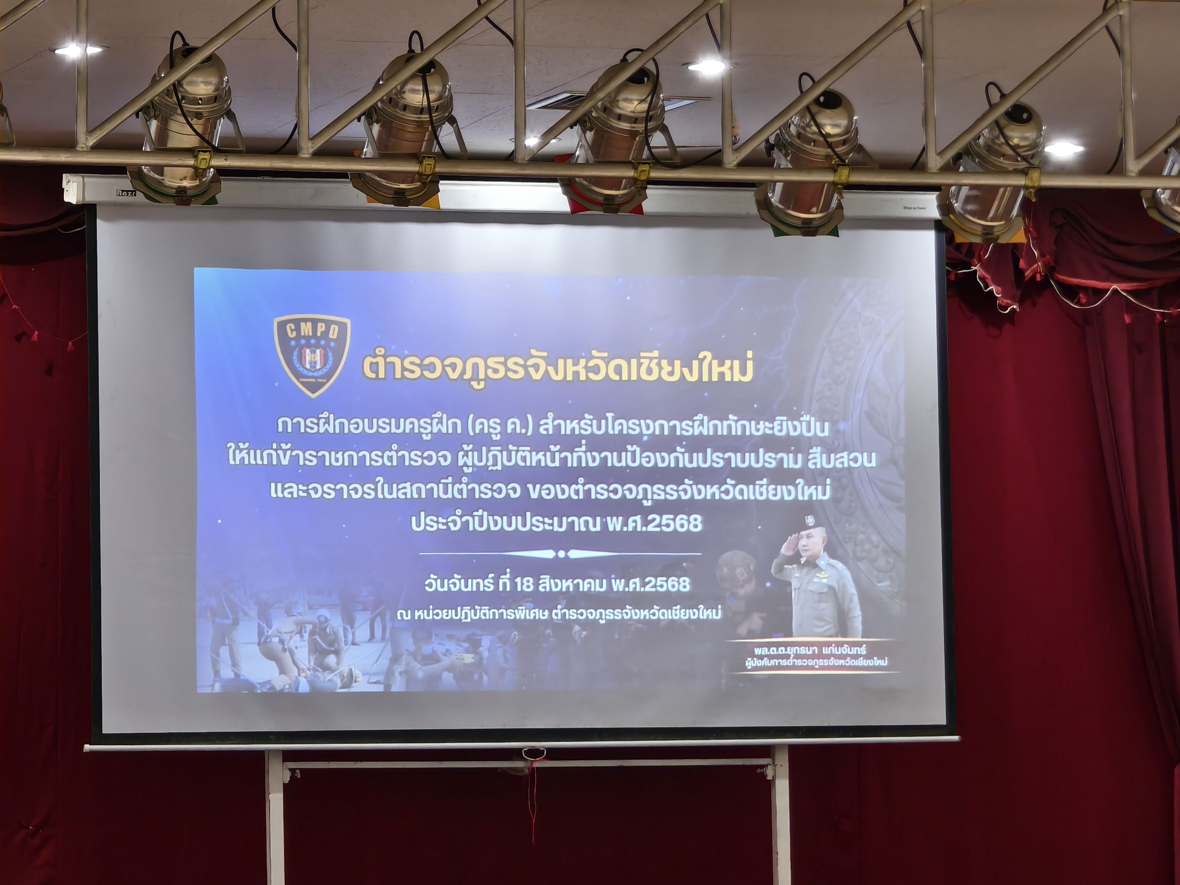 📢 ร่วมพิธีเปิดการฝึกอบรมครูฝึก (ครู ค.) สำหรับโครงการฝึกทักษะยิงปืน ให้แก่ข้าราชการตำรวจผู้ปฏิบัติหน้าที่งานป้องกันปราบปรามสืบสวนและจราจรในสถานีตำรวจ ของตำรวจภูธรจังหวัดเชียงใหม่ ประจำปีงบประมาน 2568