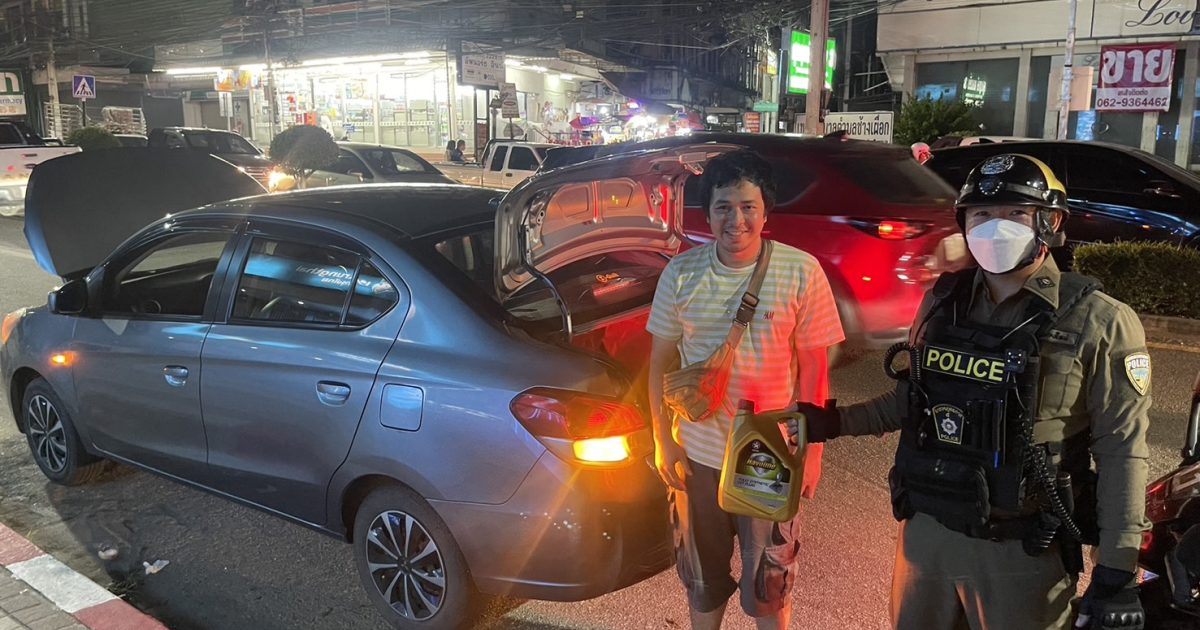 ว.4 ช่วยเหลือประชาชนน้ำมันหมด ถ.ห้วยแก้ว สายตรวจ121 ได้ไปซื้อน้ำมันมาเติมให้เรียบร้อย สามารถไปต่อได้