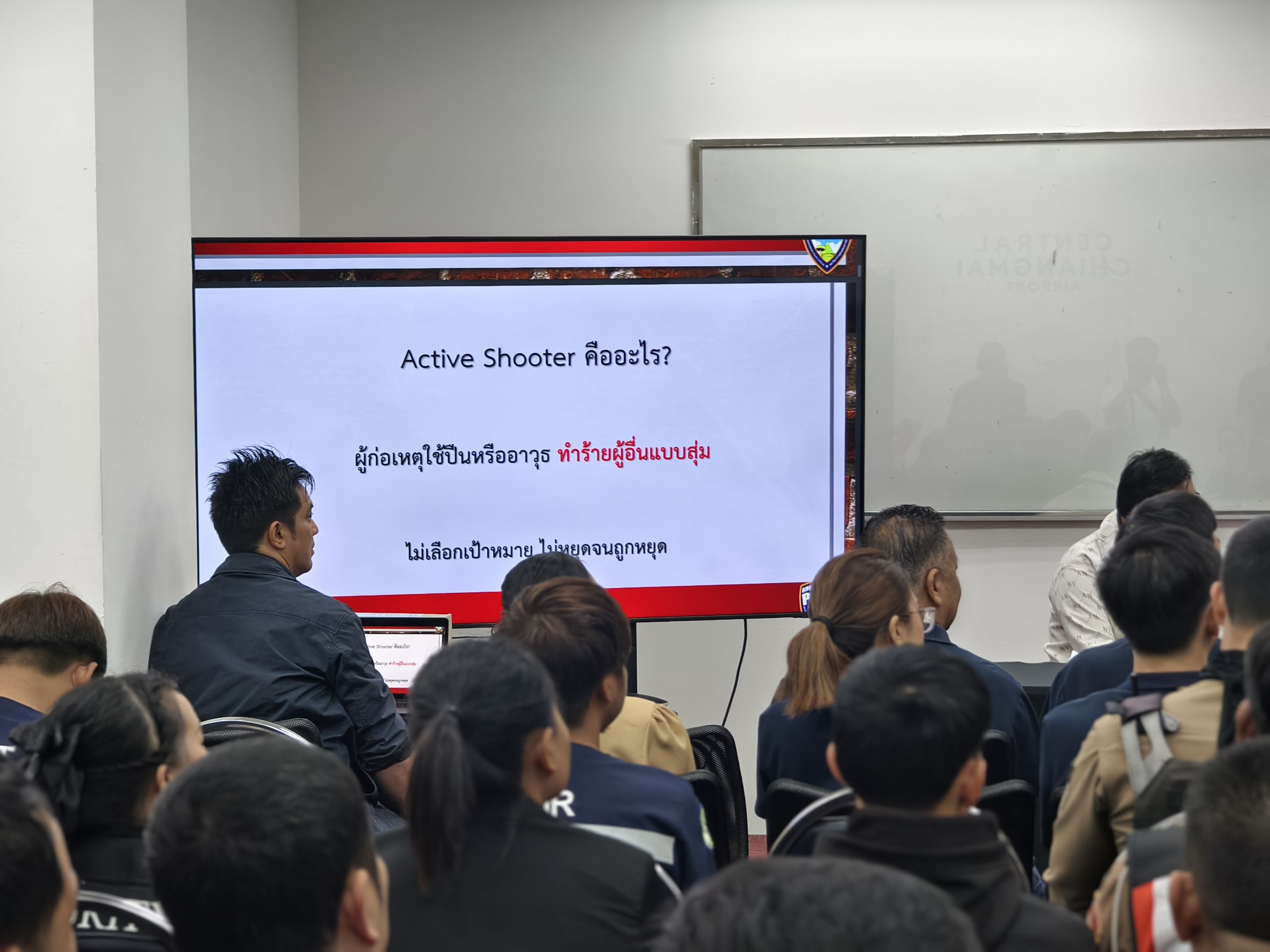 🔸ร่วมบรรยายให้ความรู้และซักซ้อมแผนเผชิญเหตุการเอาตัวรอดเมื่อเกิดเหตุการณ์กราดยิง (Active Shooter) ร่วมกับทางห้างสรรพสินค้าเซ็นทรัลแอร์พอร์ตเชียงใหม่