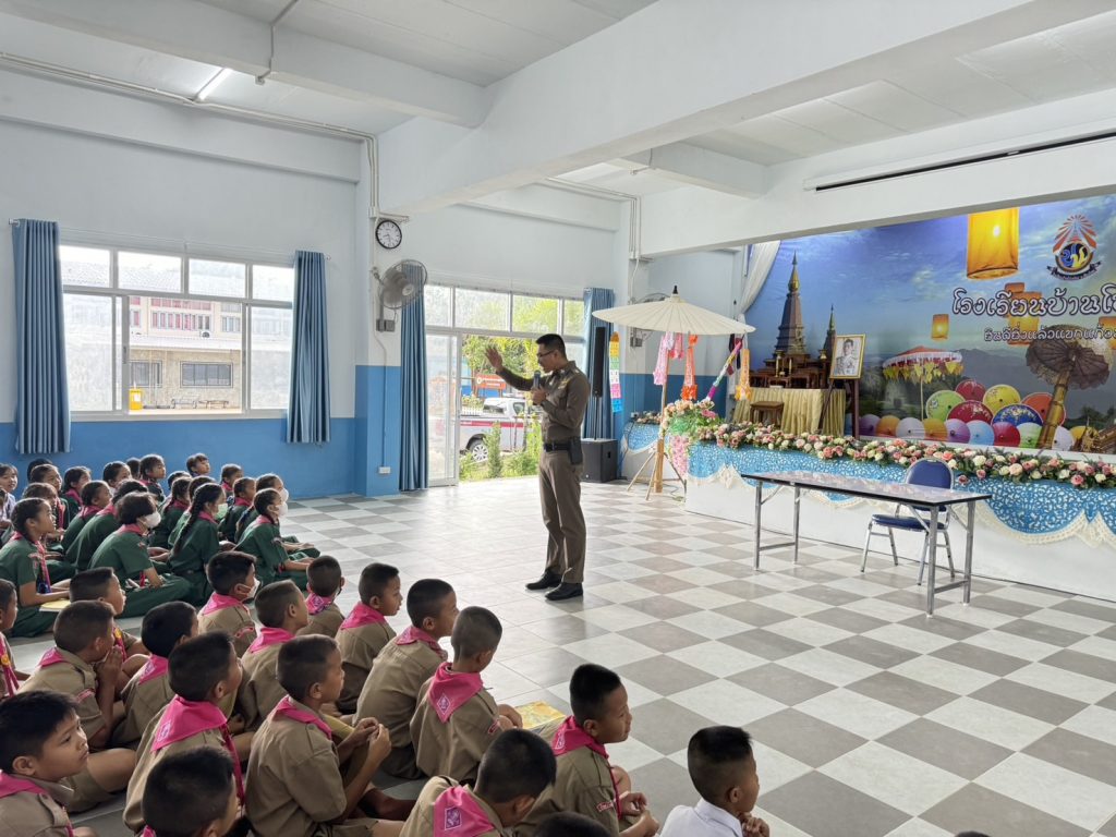 🔹ให้ความรู้ตามโครงการครู 5 นาที หน้าเสาธง เรื่อง กฎหมายจราจรเบี้องต้น ภัยโลกออนไลน์ และจิตอาสาการรักษาสถาบัน เศรษฐกิจพอเพียง