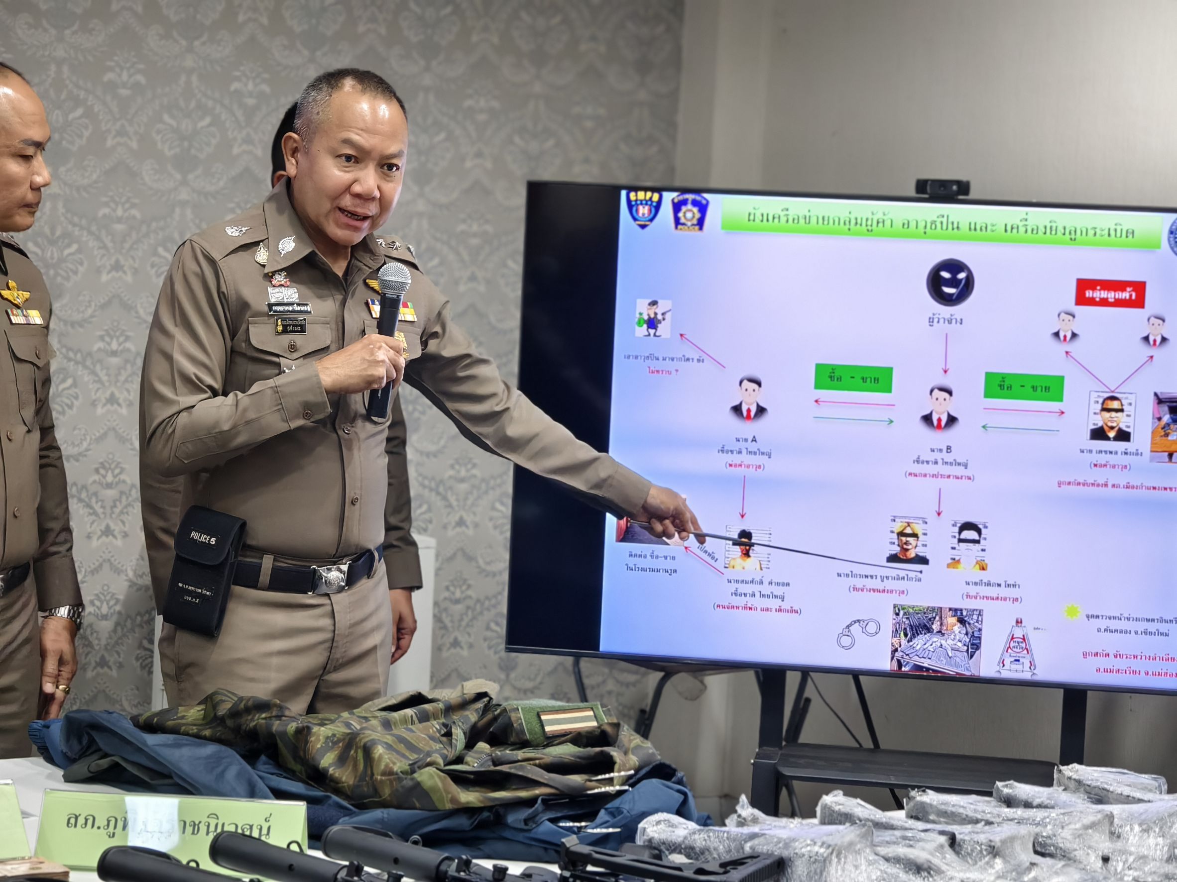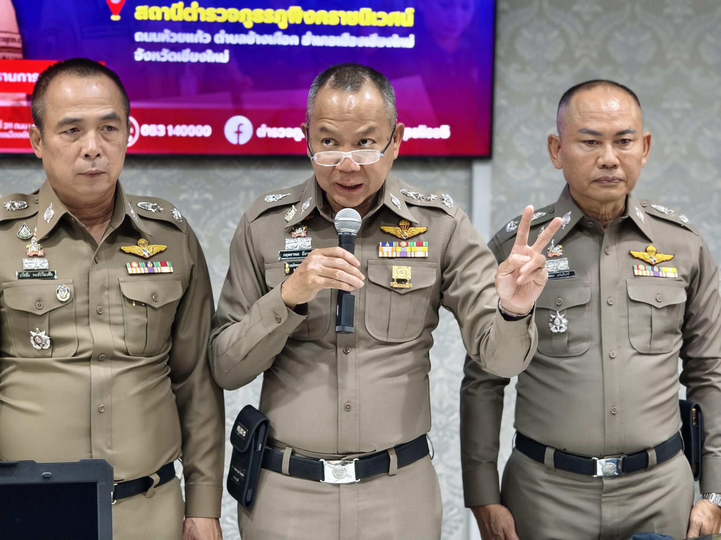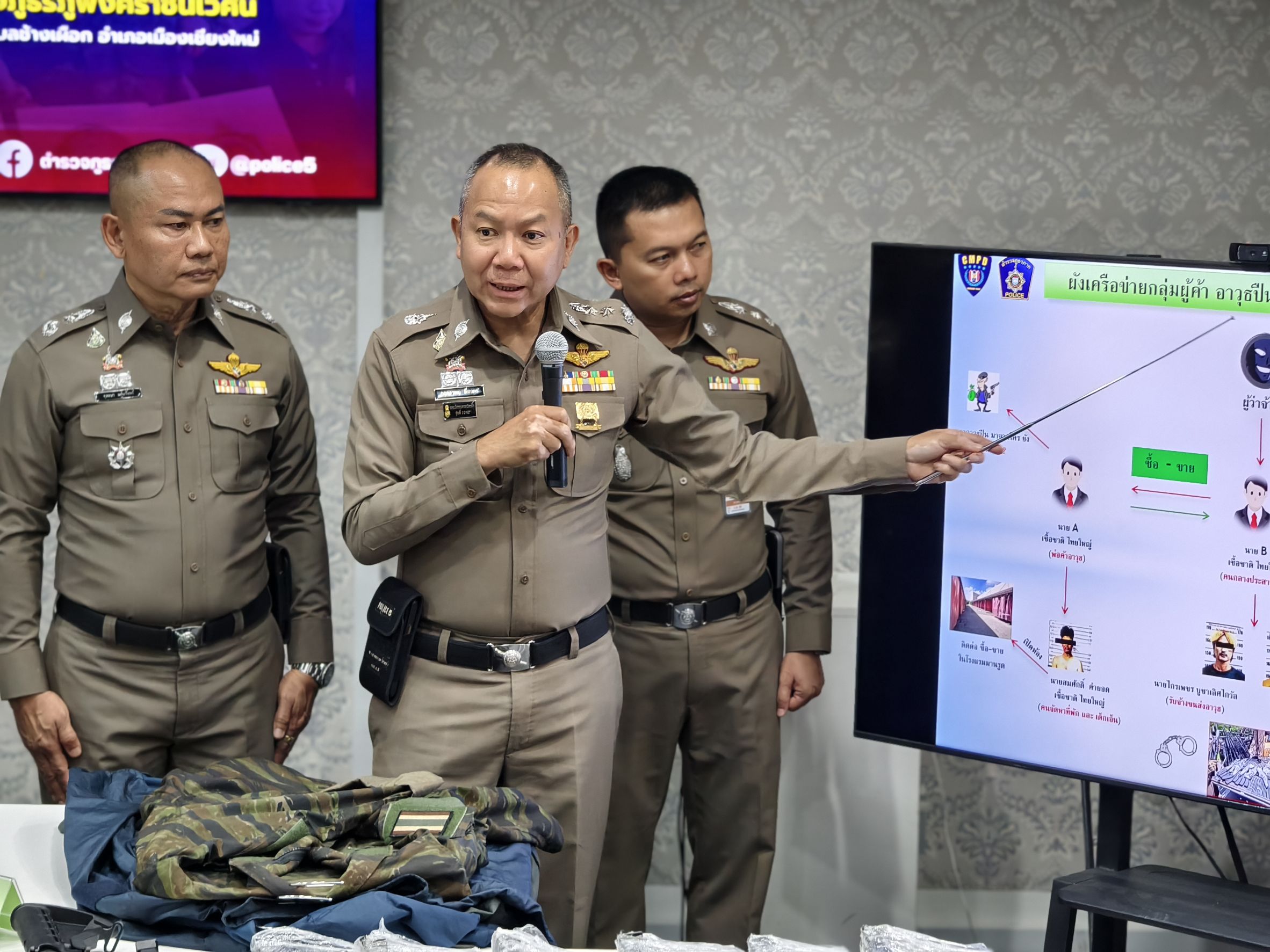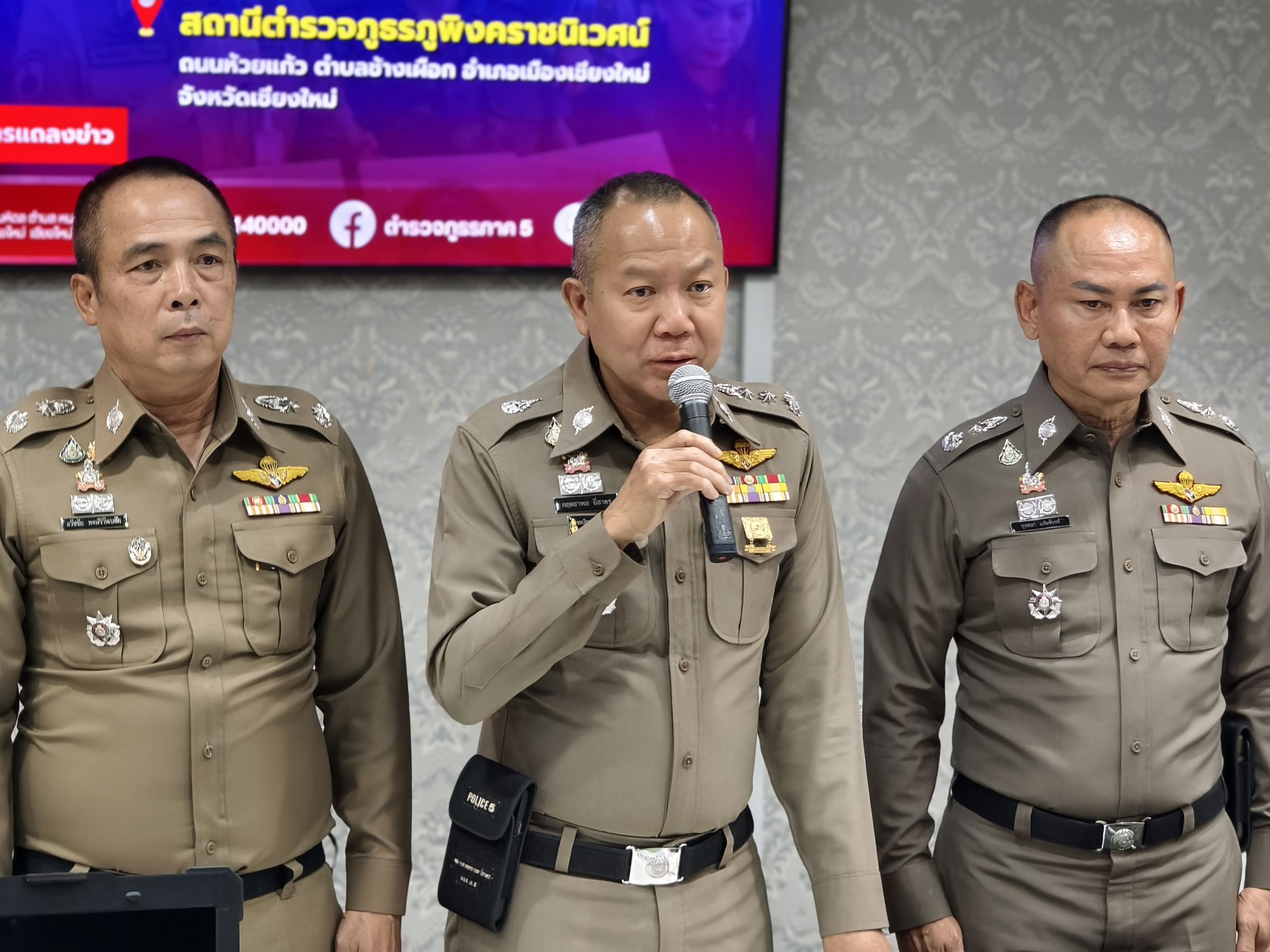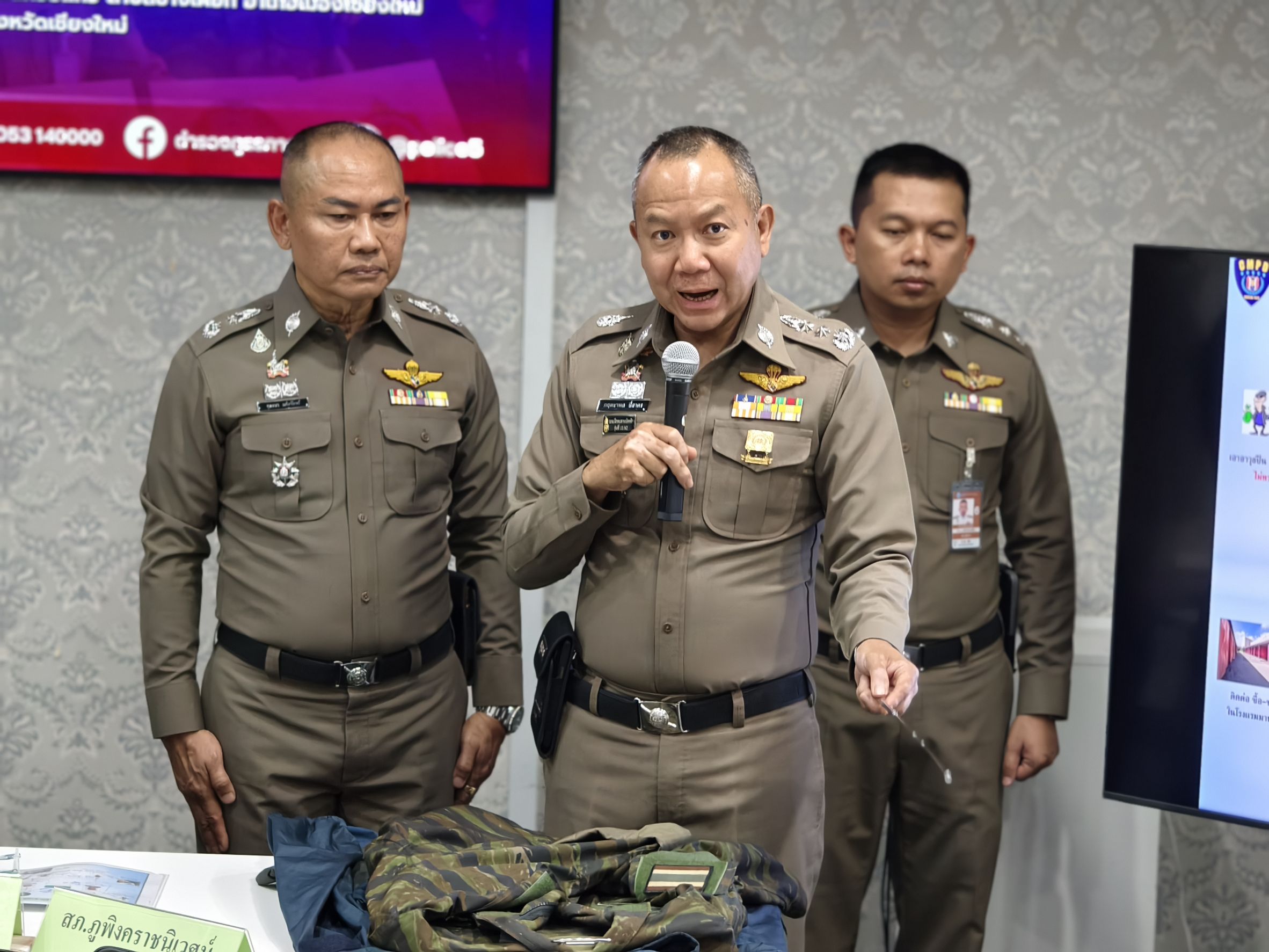 🎤 ร่วมแถลงข่าวกรณี สภ.ภูพิงคราชนิเวศน์ ร่วมจับกุมตัวผู้ต้องหาจำนวน 2 ราย พร้อมด้วยของกลางอาวุธปืนสงคราม เป็นจำนวนมาก เตรียมนำส่งชายแดนจังหวัดแม่ฮ่องสอน เมื่อวันที่ 22 เมษายน 2568 ณ จุดตรวจ สภ.ภูพิงคราชนิเวศน์ ข่วงเกษตรอินทรีย์ ถนนคันคลองชลประทาน ขาออก ต.สุเทพ อ.เมือง จ.เชียงใหม่