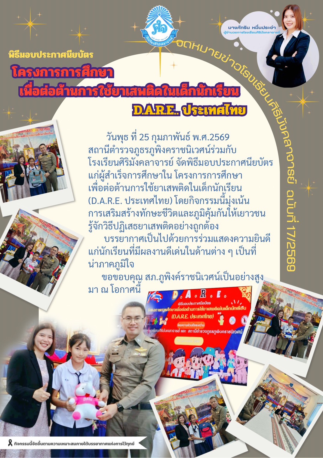 👧🧒 มีนักเรียนที่สำเร็จหลักสูตร D.A.R.E. จำนวน 14 คน