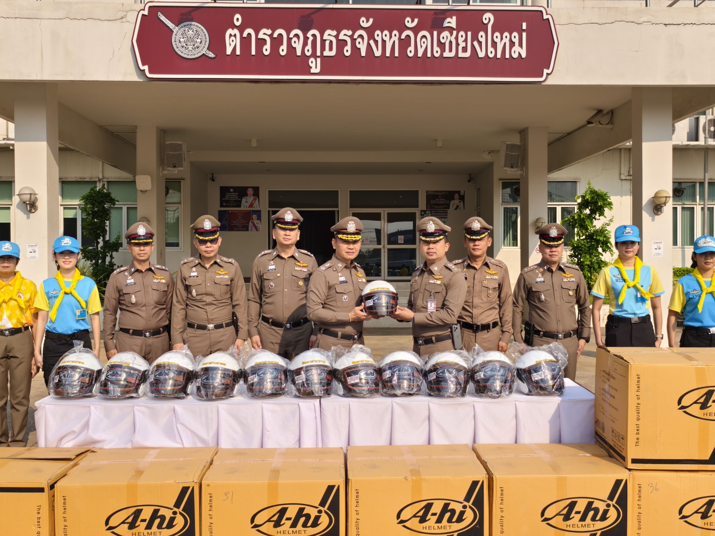 📢 รับมอบหมวกนิรภัย จาก ผบก.ภ.จว.เชียงใหม่ เพื่อนำมาแจกจ่ายให้แก่ประชาชน ผู้ใช้รถใช้ถนนในช่วงเทศกาลสงกรานต์ 2568 ตามโครงการ ขับขี่ปลอดภัย สวมหมวกนิรภัย ป้องกันและลดอุบัติเหตุจราจรทางบก ด้วยความห่วงใยจากสำนักงานตำรวจแห่งชาติ