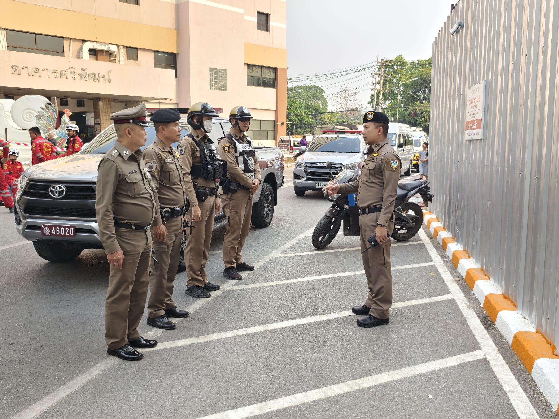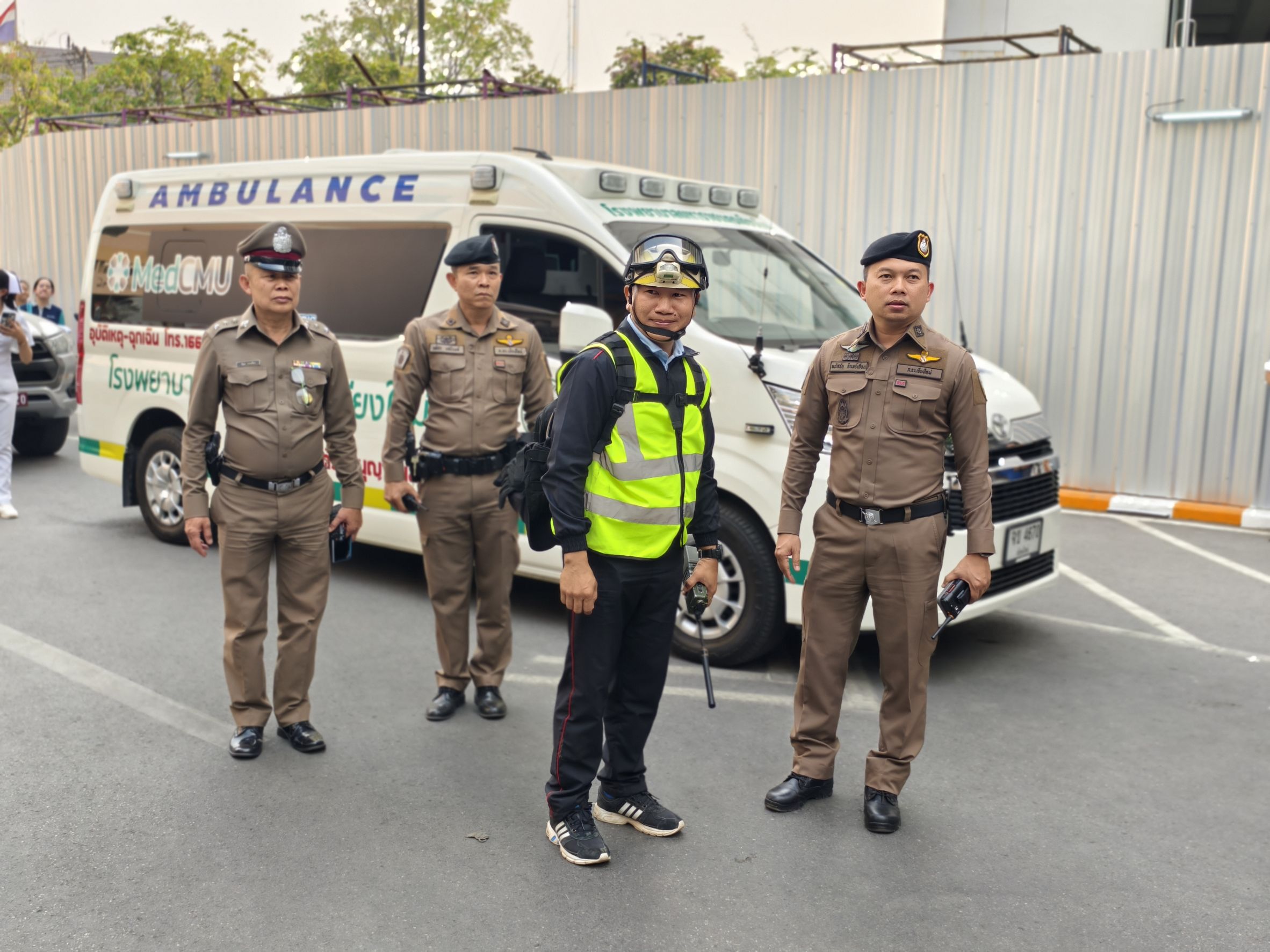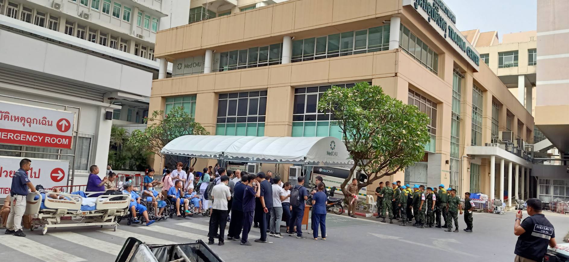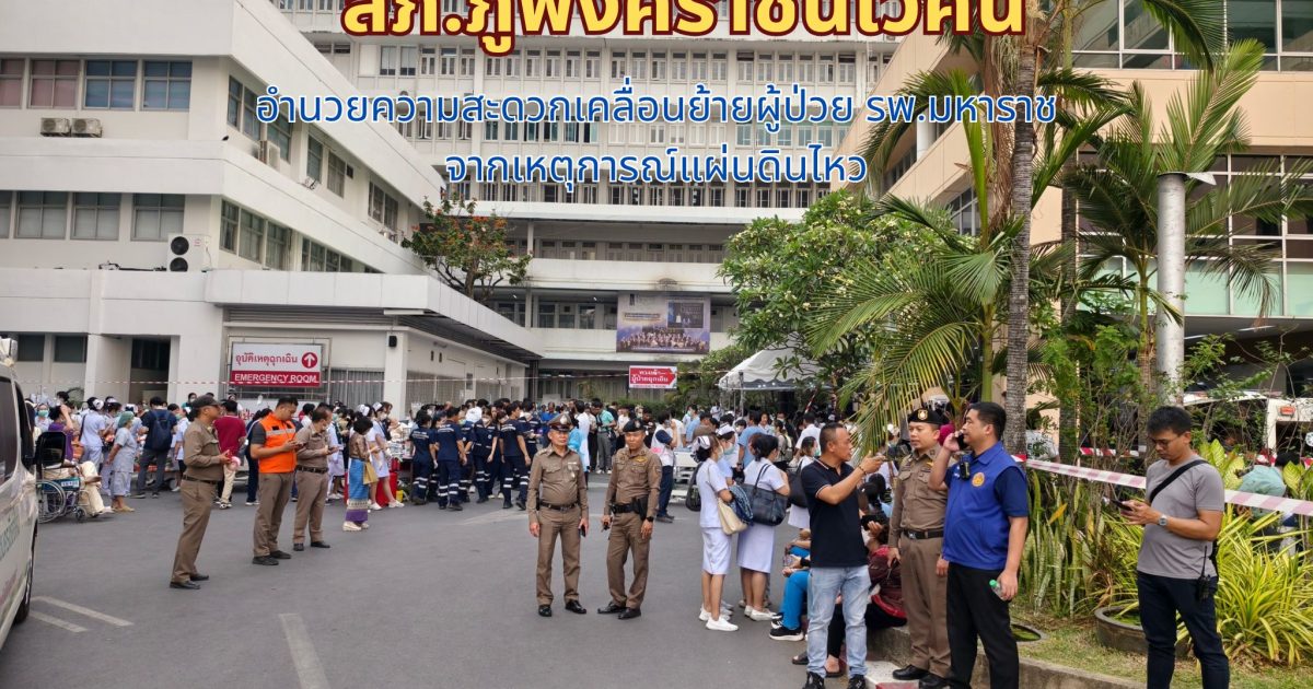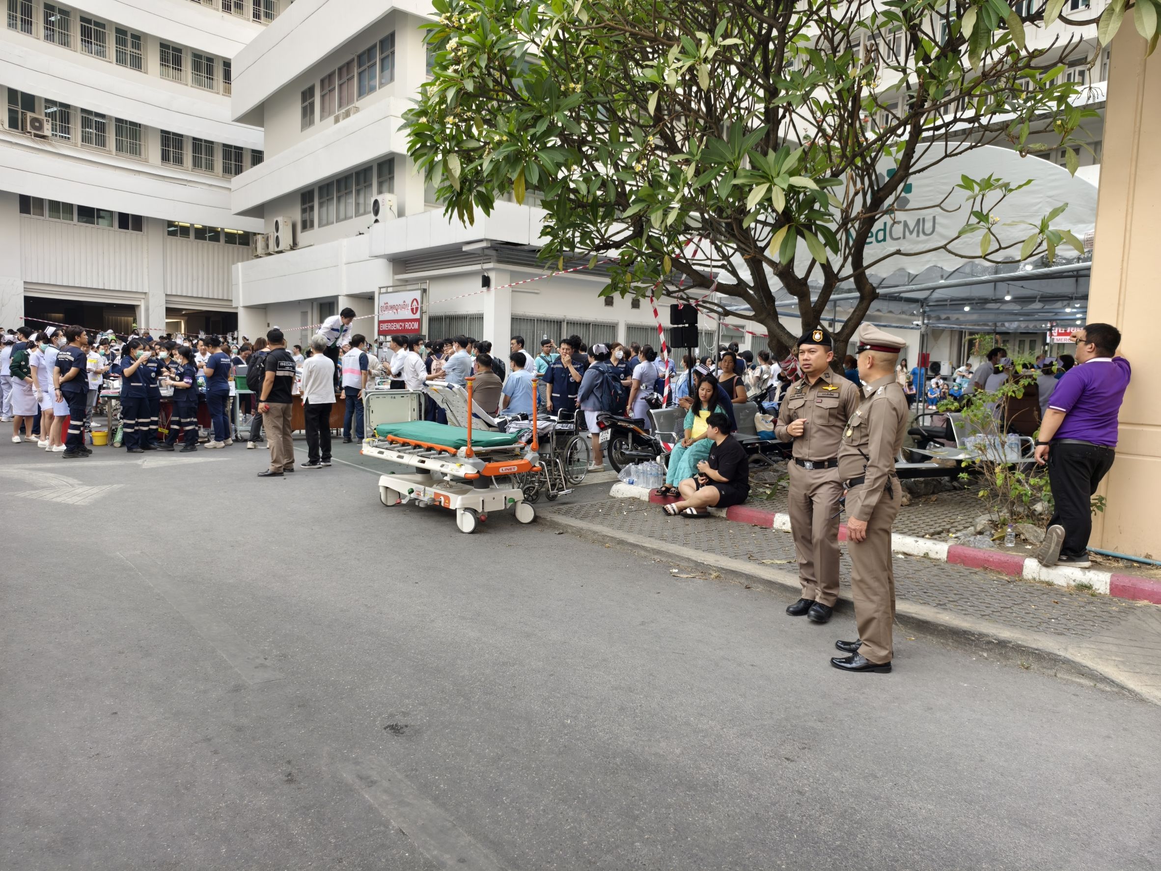 📢 บูรณาการร่วม ฝ่ายปกครอง จนท.แพทย์ รพ.มหาราชนครเชียงใหม่ หน่วยกู้ชีพ กู้ภัย ร่วมอำนวยความสะดวกและดูแลความปลอดภัยให้กับประชาชนผู้มาใช้บริการโรงพยาบาลมหาราชฯ ซึ่งได้มีการเคลื่อนย้ายผู้ป่วยลงมาจากตึกพักรักษาผู้ป่วยเพื่อตรวจสอบโครงสร้างภายในตัวอาคารหลังจากเกิดเหตุการณ์แผ่นดินไหว เมื่อช่วงเวลา 13.22 น. ที่ผ่านมา