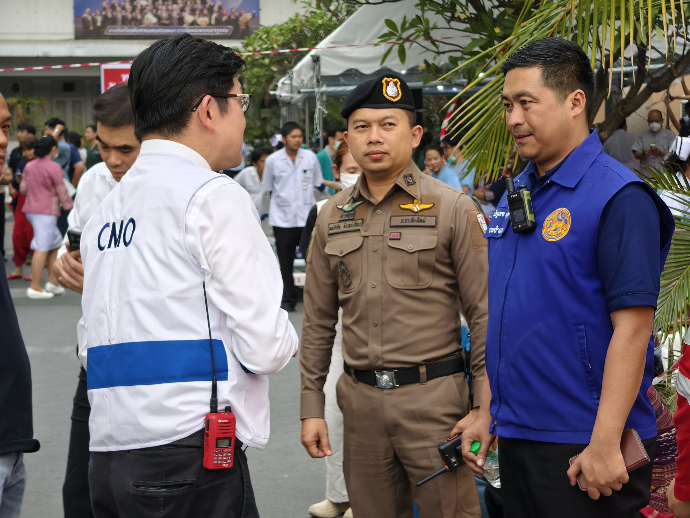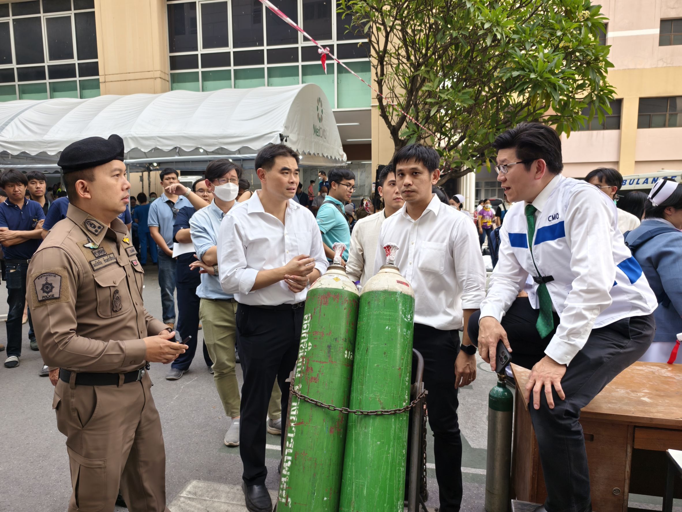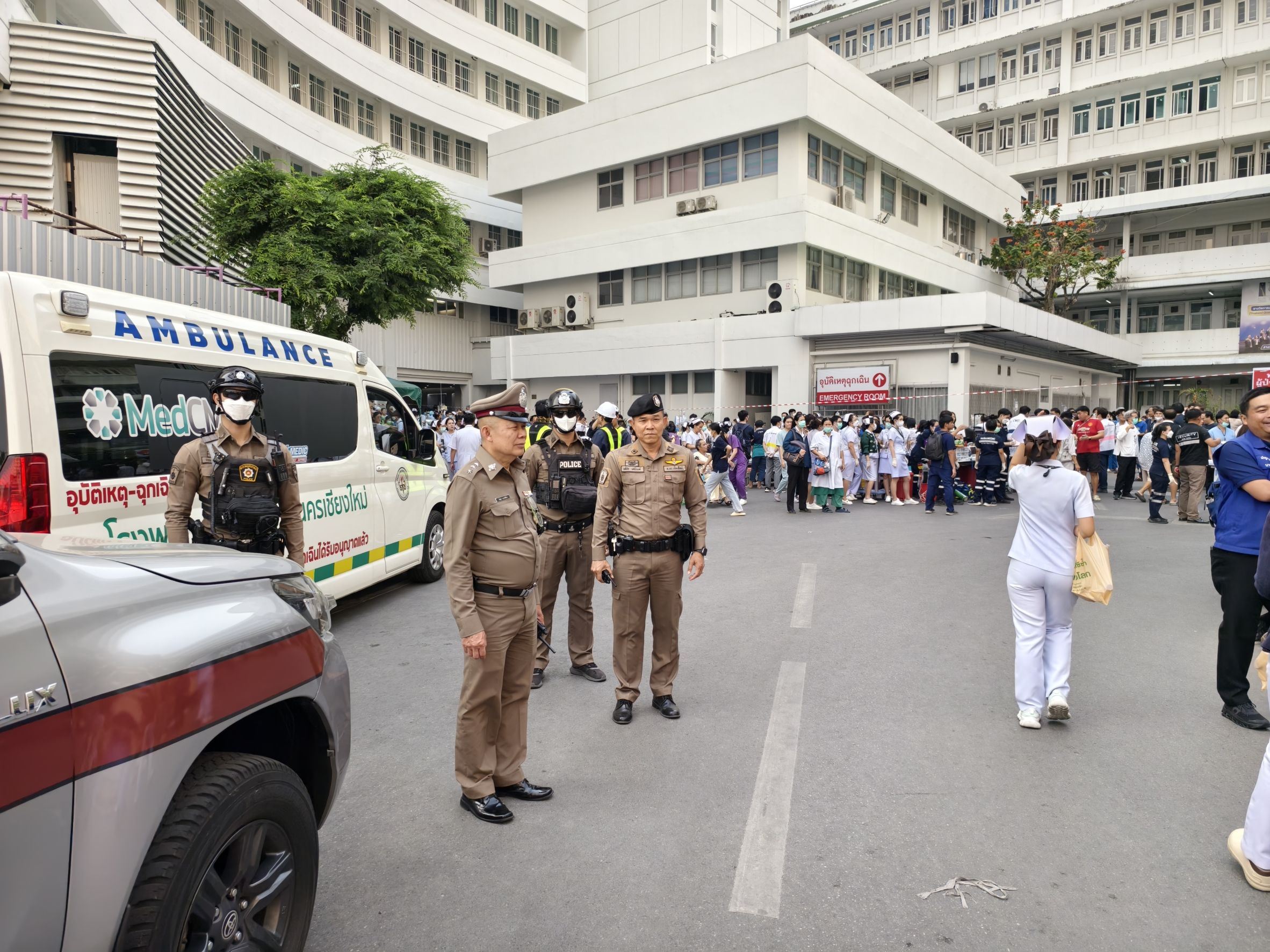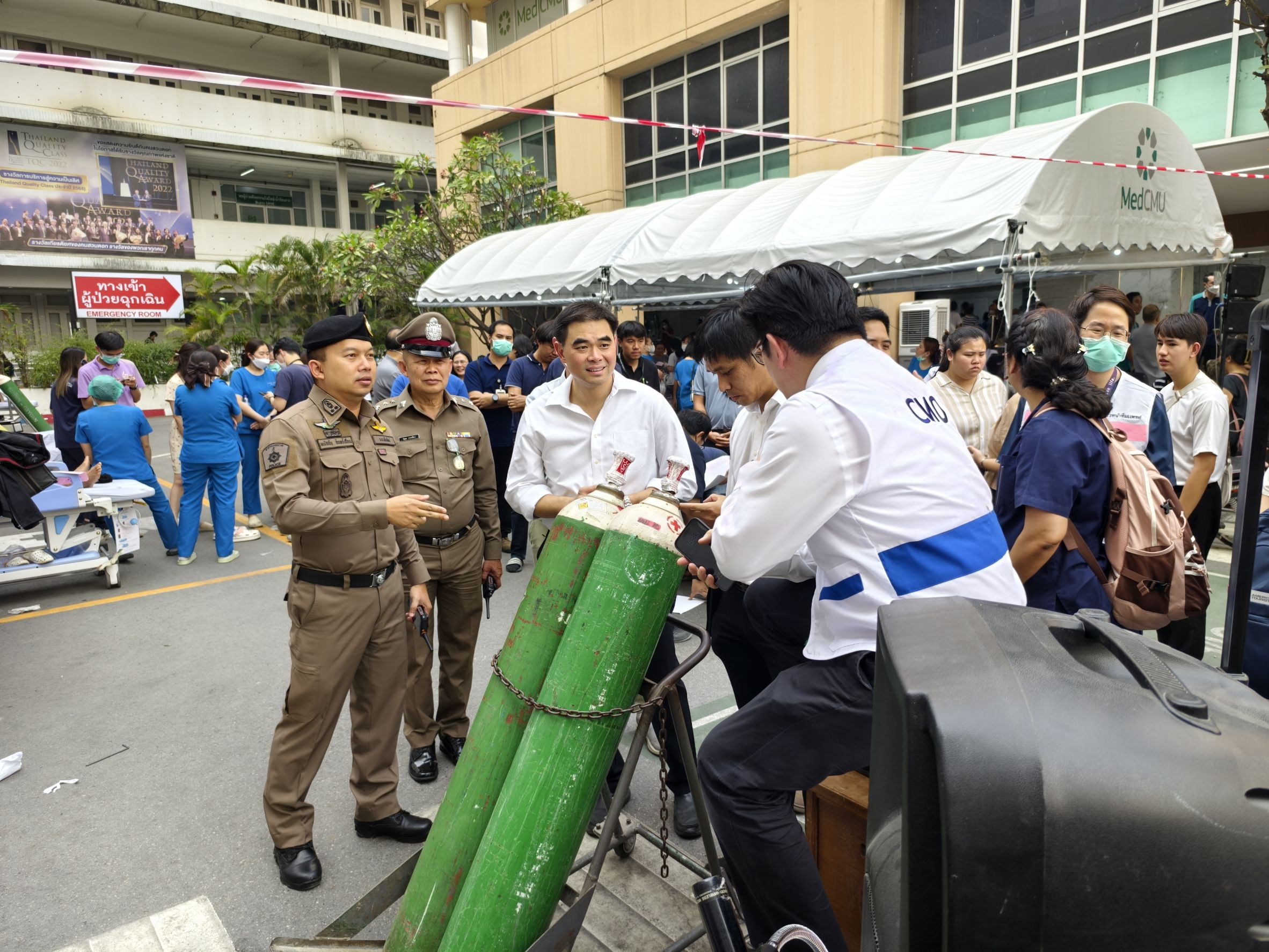 📢 บูรณาการร่วม ฝ่ายปกครอง จนท.แพทย์ รพ.มหาราชนครเชียงใหม่ หน่วยกู้ชีพ กู้ภัย ร่วมอำนวยความสะดวกและดูแลความปลอดภัยให้กับประชาชนผู้มาใช้บริการโรงพยาบาลมหาราชฯ ซึ่งได้มีการเคลื่อนย้ายผู้ป่วยลงมาจากตึกพักรักษาผู้ป่วยเพื่อตรวจสอบโครงสร้างภายในตัวอาคารหลังจากเกิดเหตุการณ์แผ่นดินไหว เมื่อช่วงเวลา 13.22 น. ที่ผ่านมา