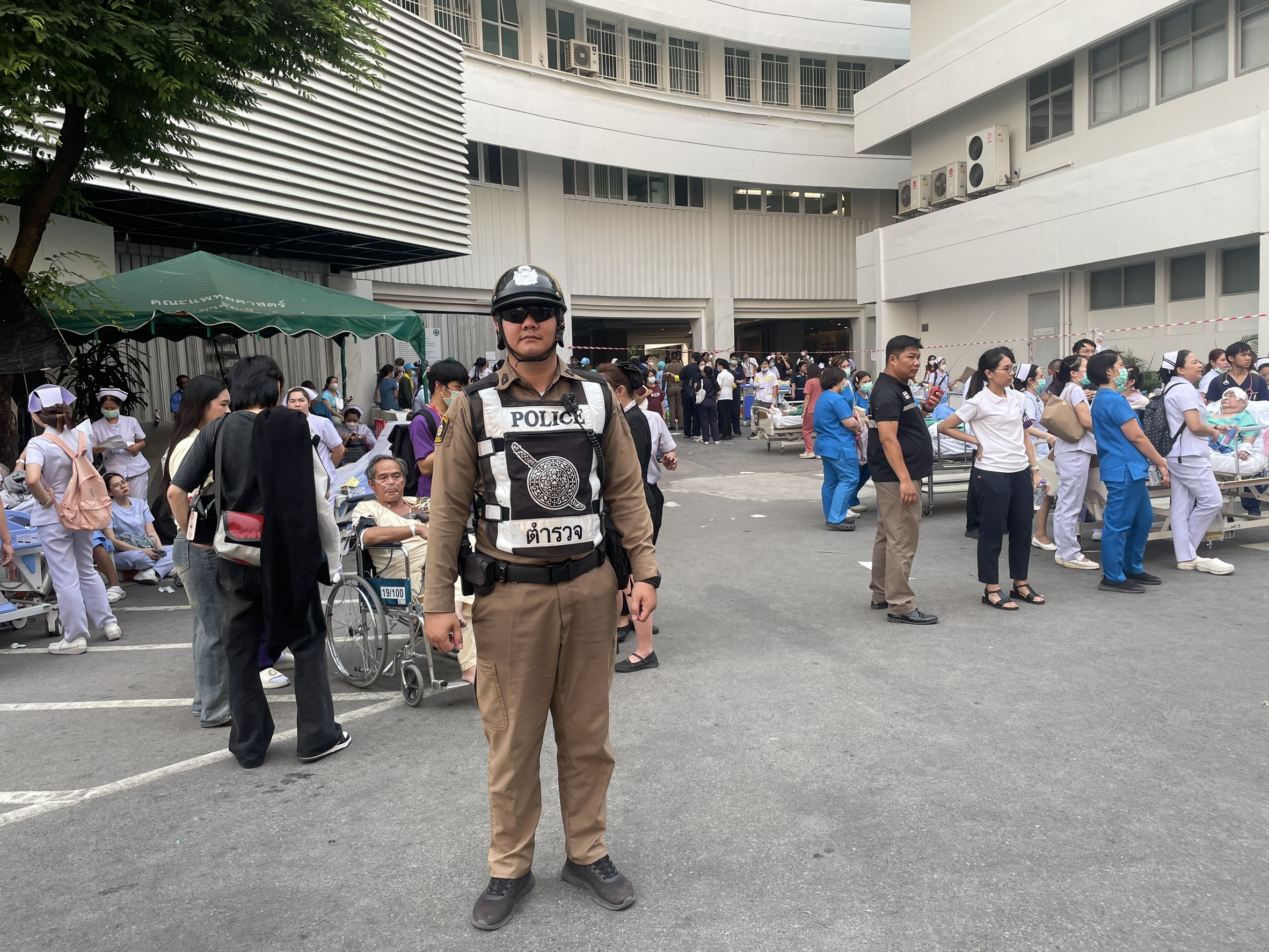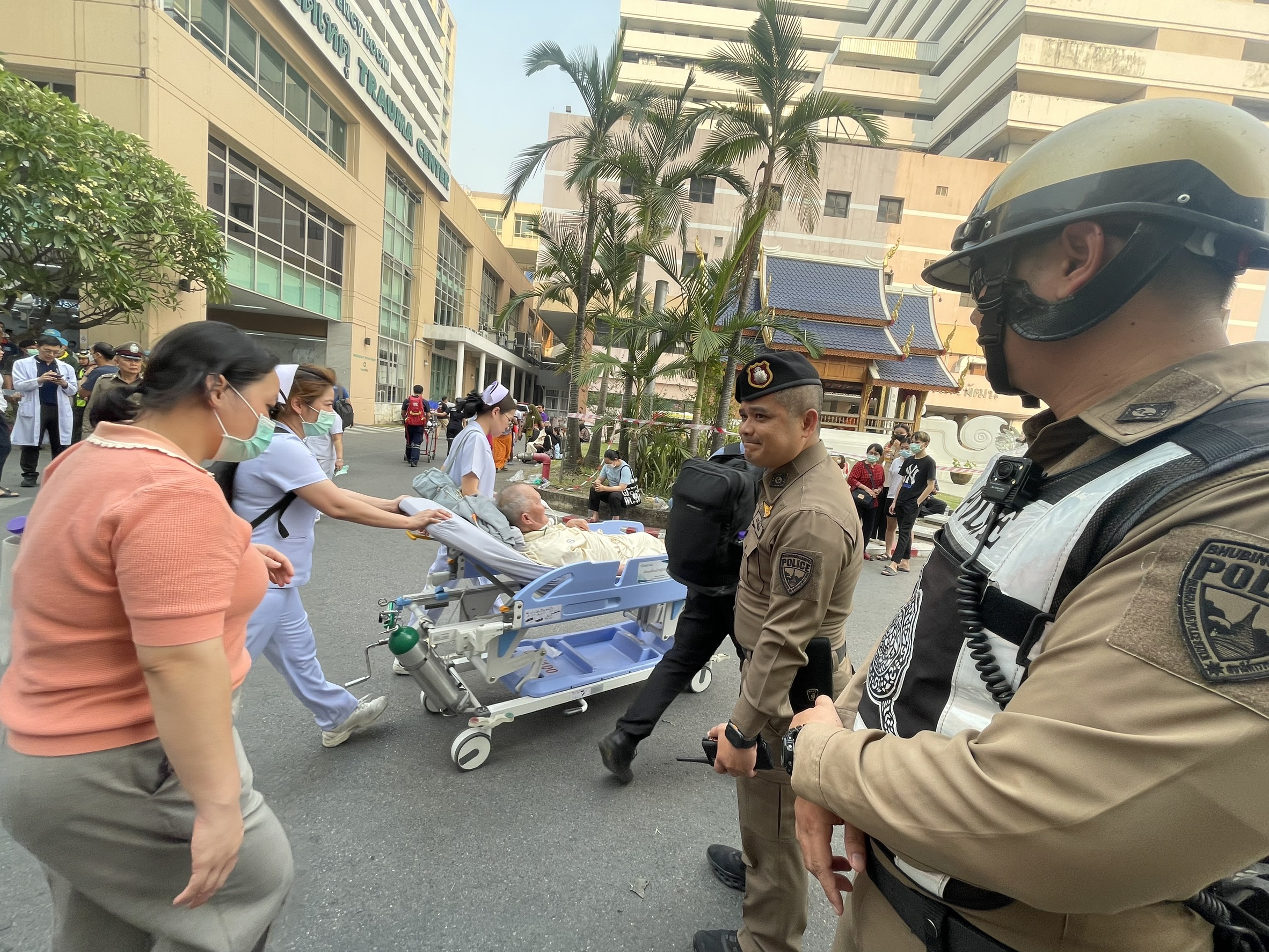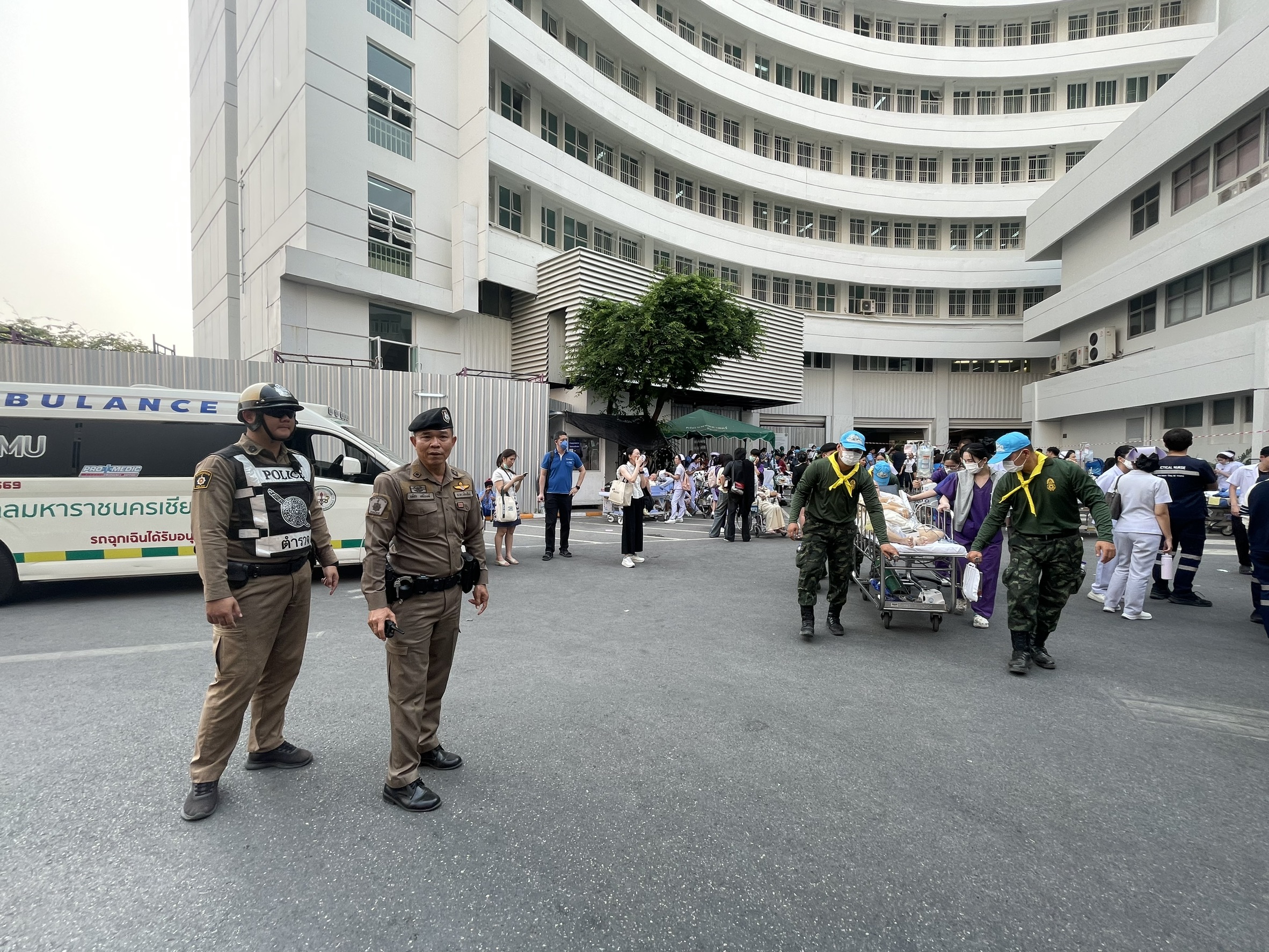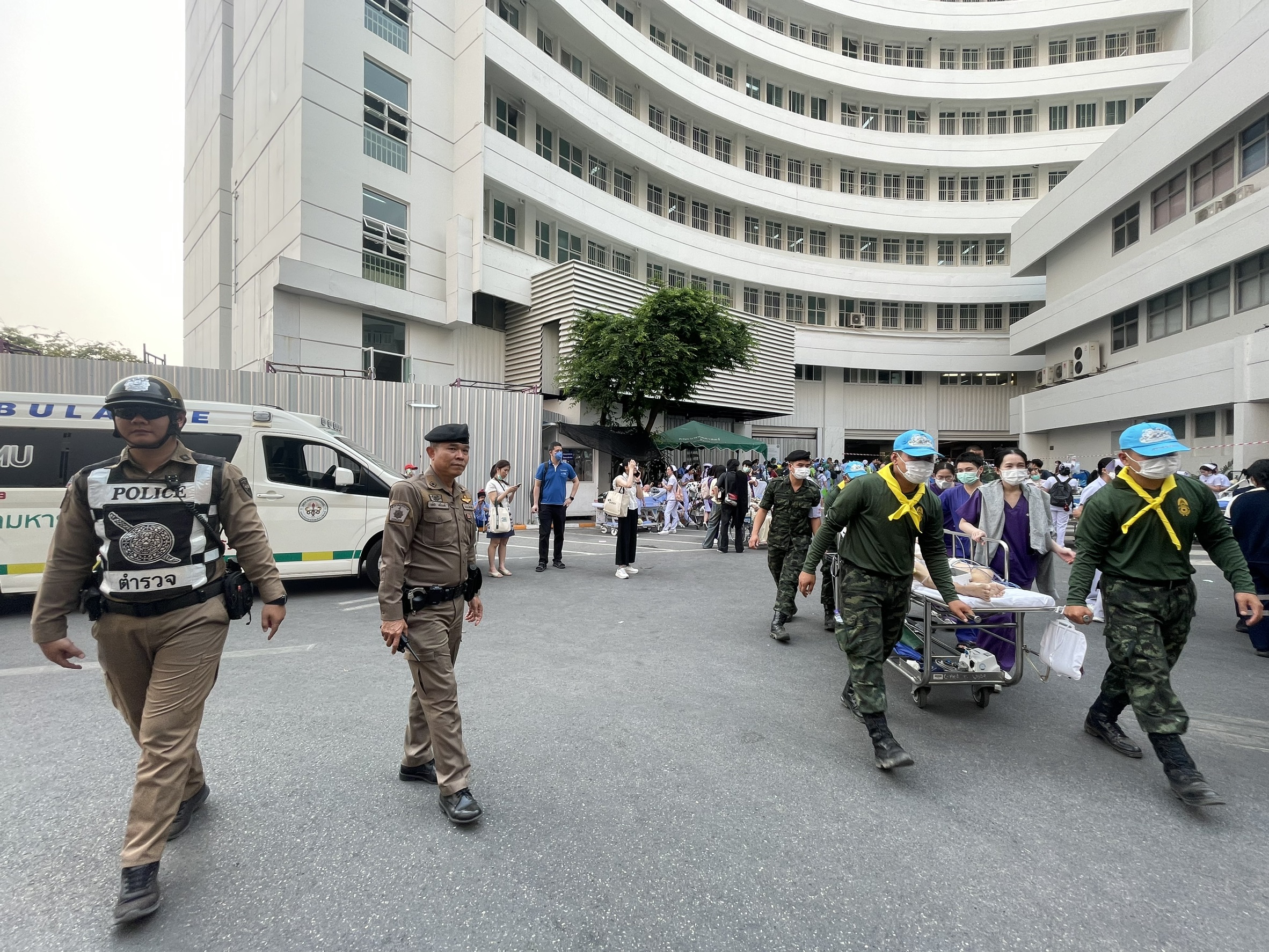 📢 บูรณาการร่วม ฝ่ายปกครอง จนท.แพทย์ รพ.มหาราชนครเชียงใหม่ หน่วยกู้ชีพ กู้ภัย ร่วมอำนวยความสะดวกและดูแลความปลอดภัยให้กับประชาชนผู้มาใช้บริการโรงพยาบาลมหาราชฯ ซึ่งได้มีการเคลื่อนย้ายผู้ป่วยลงมาจากตึกพักรักษาผู้ป่วยเพื่อตรวจสอบโครงสร้างภายในตัวอาคารหลังจากเกิดเหตุการณ์แผ่นดินไหว เมื่อช่วงเวลา 13.22 น. ที่ผ่านมา