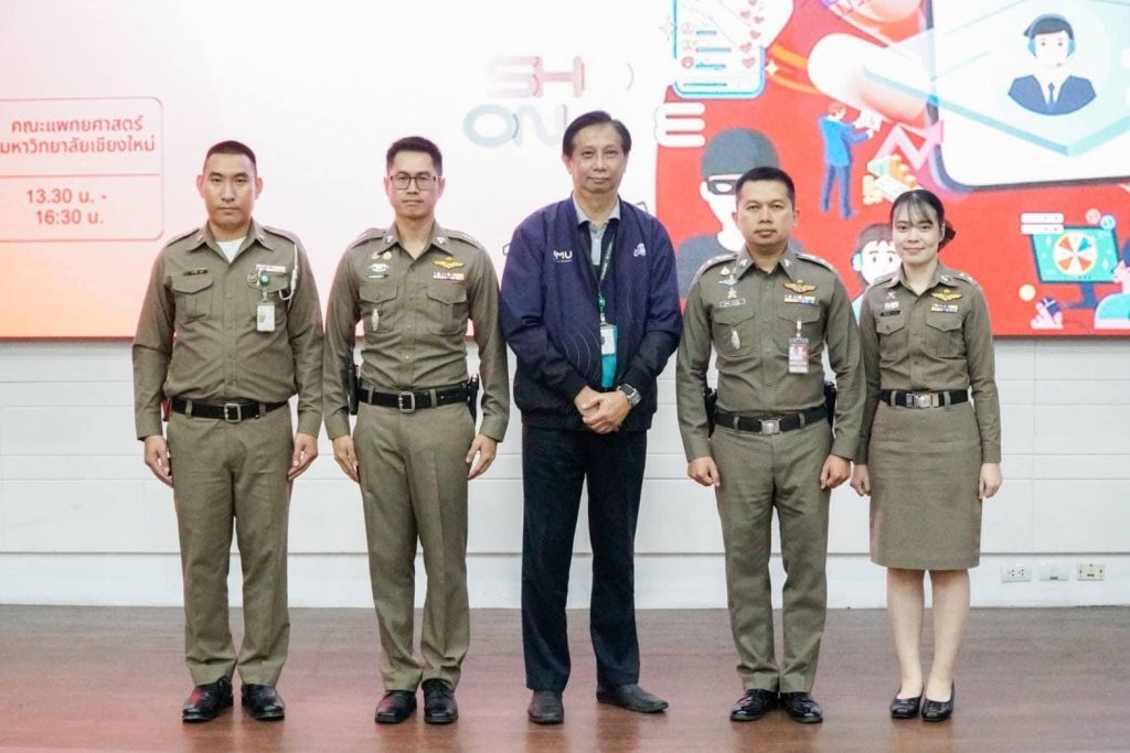 🔹พ.ต.อ.มนัสชัย อินทร์เถื่อน ผกก.สภ.ภูพิงคราชนิเวศน์ พร้อมด้วย พ.ต.ต.เจษฎา พันธุ์แก้ว สวป.(ชส)ฯ, ร.ต.ท.หญิง ภัทรนันท์ คำปวน รอง สว.(สอบสวน)ฯ พร้อมด้วย จนท.ชุด ชมส.สภ.ภูพิงค์ฯ ได้รับเกียรติจากคณะแพทย์ศาสตร์ มหาวิทยาลัยเชียงใหม่ เชิญมาเป็นวิทยากร บรรยายให้ความรู้แก่บุคลากรคณะแพทย์ศาสตร์ มหาวิยาลัยเชียงใหม่