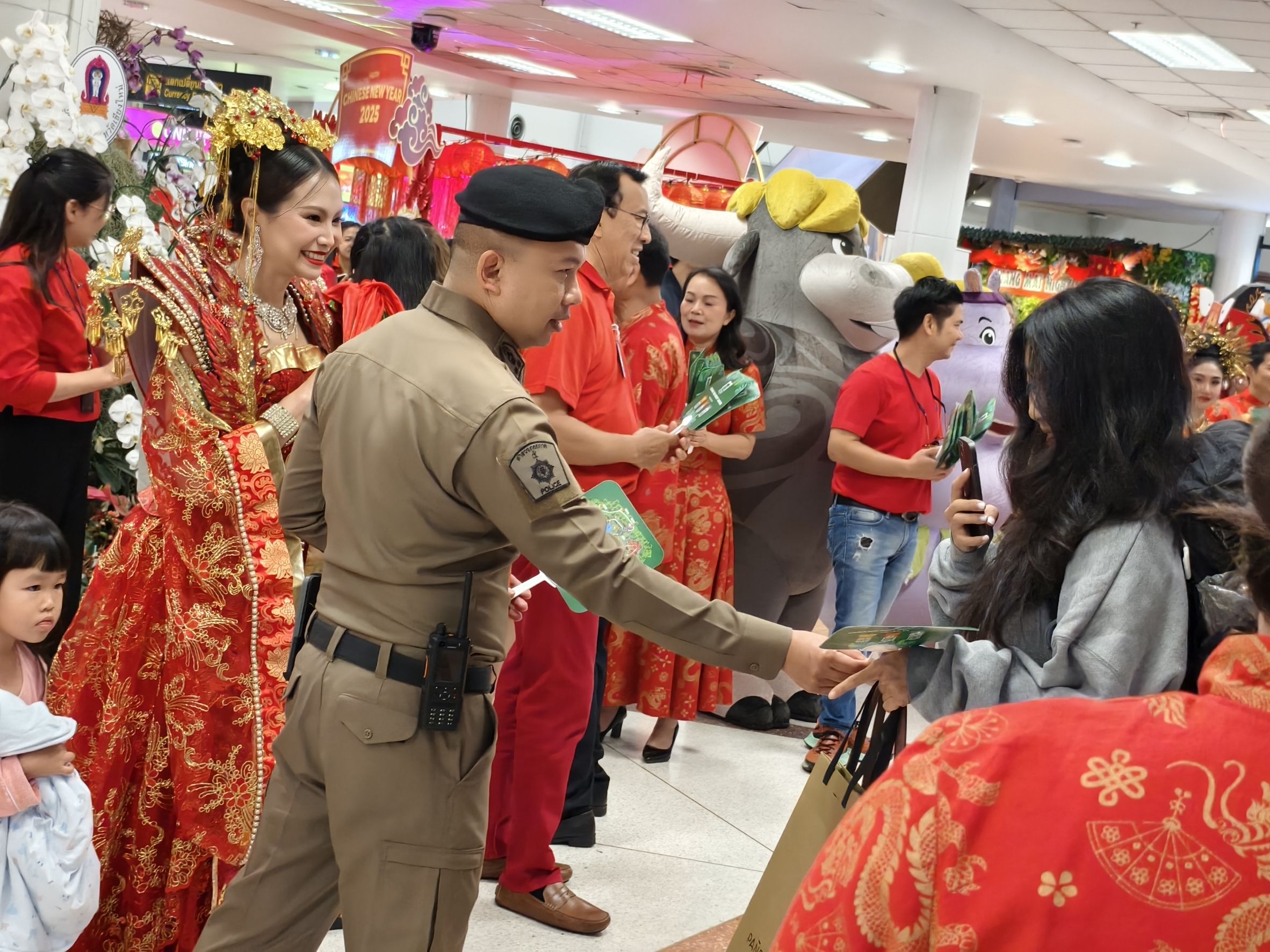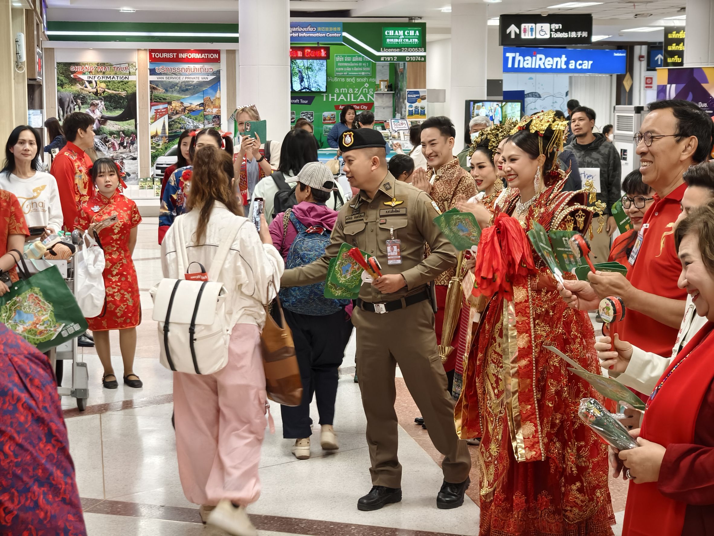 ร่วมกับ ท่าอากาศยานนานาชาติเชียงใหม่ ร่วมดูแลความปลอดภัยและให้การต้อนรับนักท่องเที่ยว พร้อมทั้งร่วมแจกของที่ระลึก เนื่องในเทศกาลตรุษจีน 2568 ให้แก่นักท่องเที่ยวที่เดินทางมายังท่าอากาศยานนานาชาติเชียงใหม่