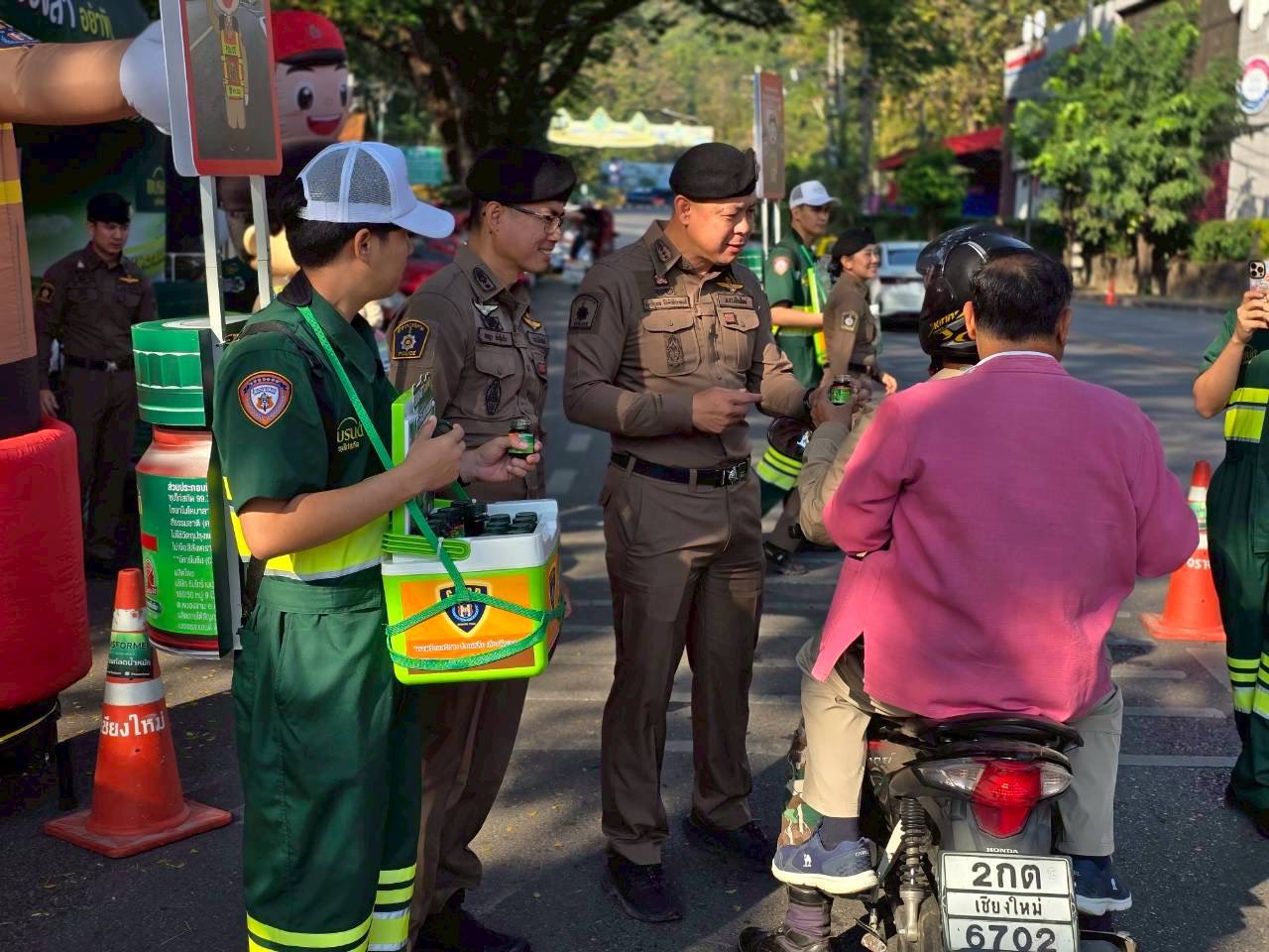 🔹โดยได้จัดกิจกรรมแจกเครื่องดื่มแบรนด์ ให้กับผู้ขับขี่ยาพาหนะ ประชาชน และนักท่องเที่ยว