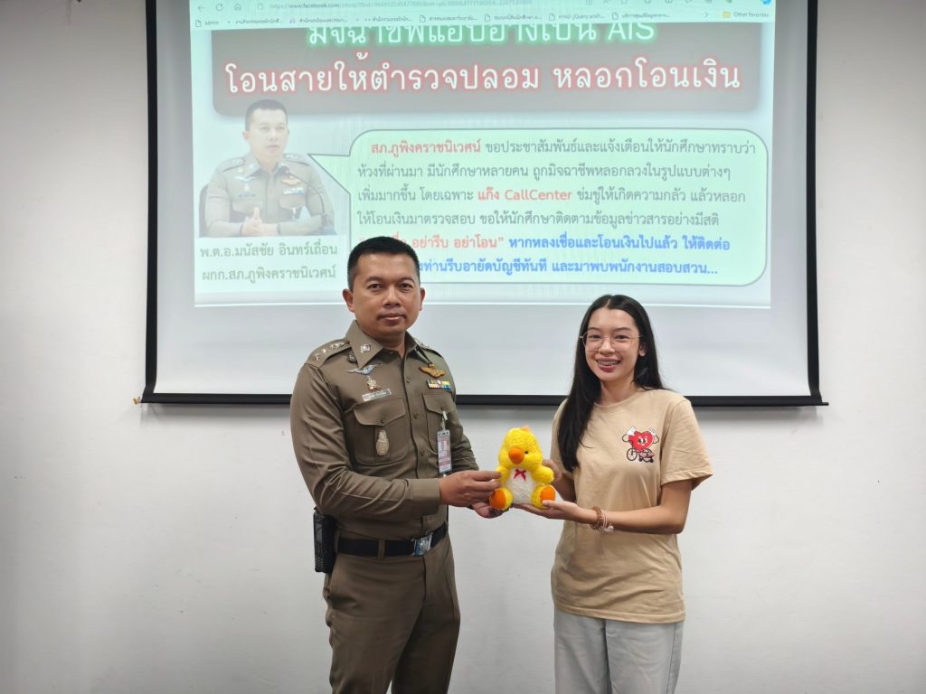 🔹จัดกิจกรรมบรรยายให้ความรู้ แก่บุคลากร และ นักศึกษาชั้นปีที่ 1 ในหัวข้อ”การป้องกันภัยอาชญากรรมทางเทคโนโลยี”