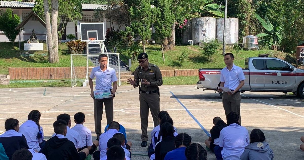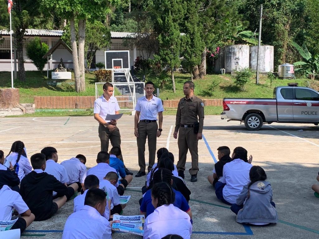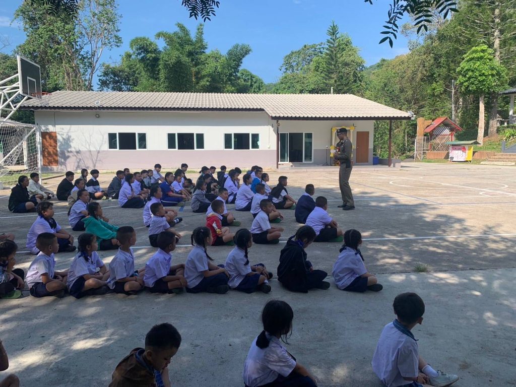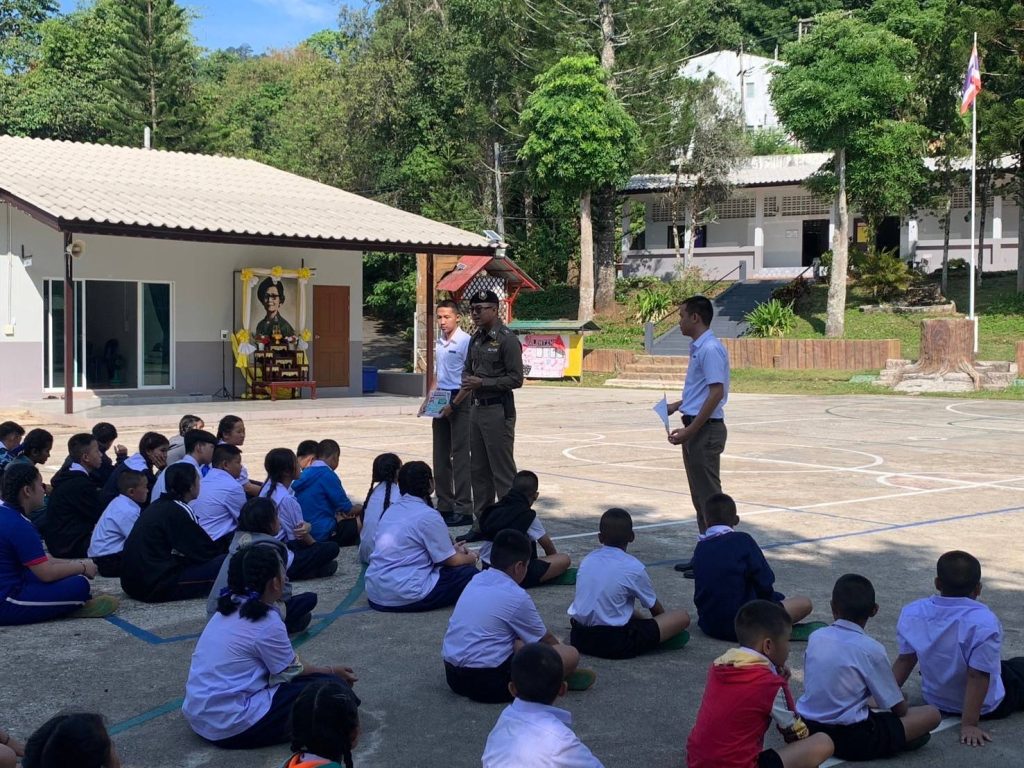 ให้ความรู้.ตามโครงการครู 5 นาที หน้าเสาธง เรื่อง กฎหมายจราจรเบี้องต้น ภัยโลกออนไลน์ และจิตอาสาการรักษาสถาบัน เศรษฐกิจพอเพียง