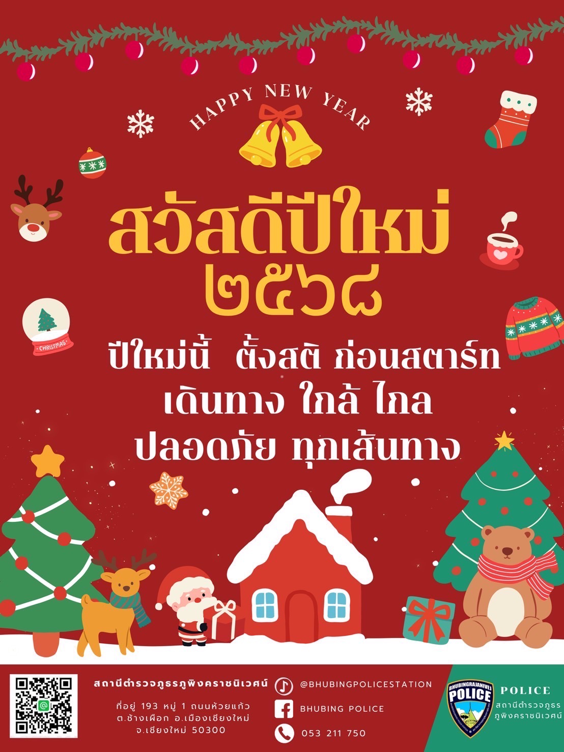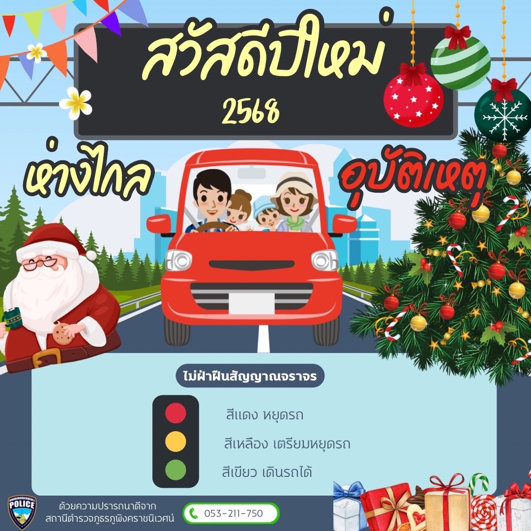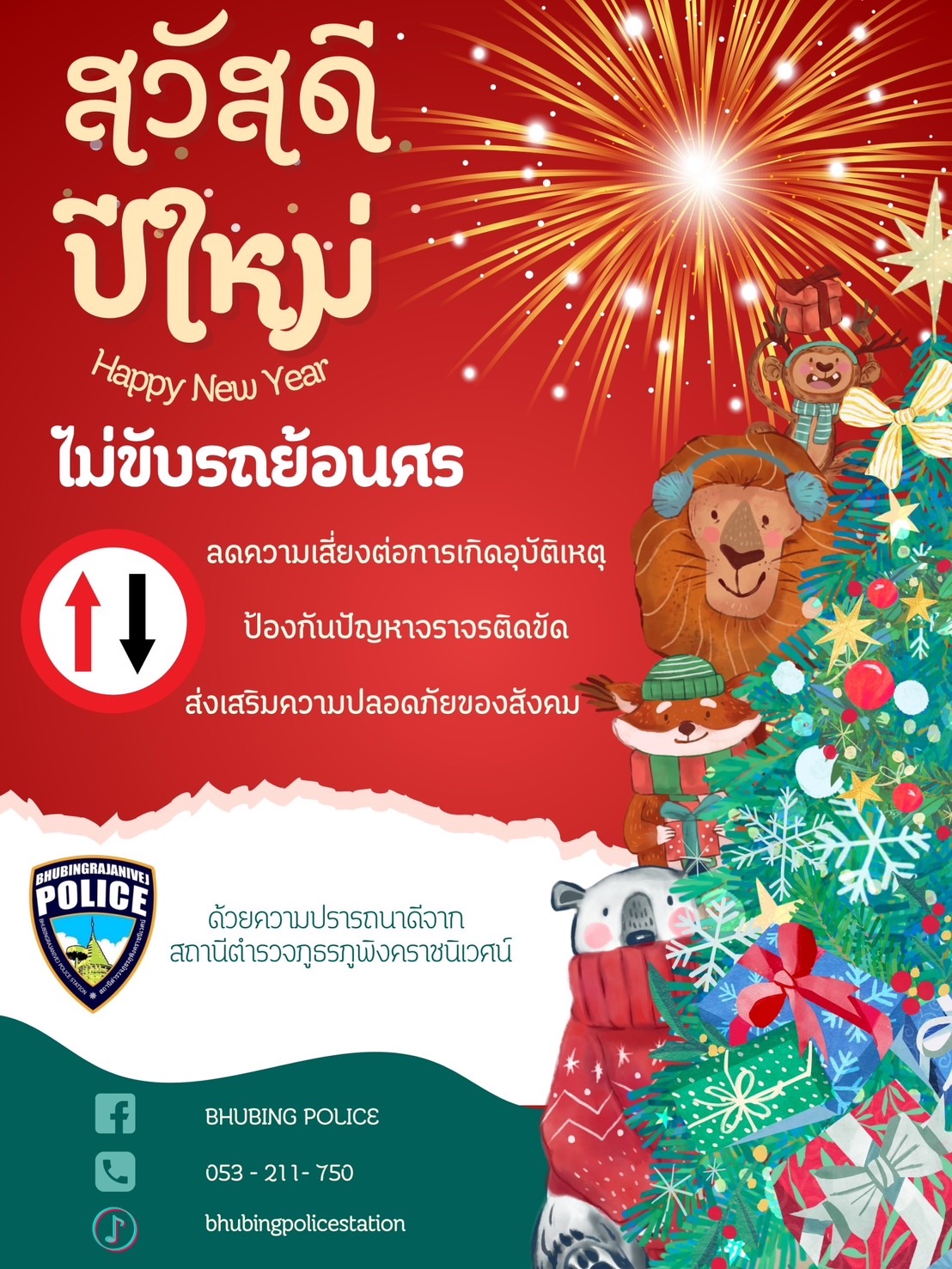 😻“ช่วงเทศกาลปีใหม่คือเวลาที่เราทุกคนรอคอยเพื่อกลับบ้านหรือเดินทางไปพบคนที่รัก แต่ความปลอดภัยบนท้องถนนต้องมาก่อนทุกอย่าง เราขอให้ทุกคนเดินทางด้วยความระมัดระวัง ปฏิบัติตามกฎจราจร ไม่ขับรถเร็ว ง่วงไม่ขับ และหลีกเลี่ยงการดื่มแอลกอฮอลก่อนขับรถ เพื่อให้เทศกาลปีใหม่ครั้งนี้เป็นช่วงเวลาที่เต็มไปด้วยความสุขและรอยยิ้มของทุกคน”