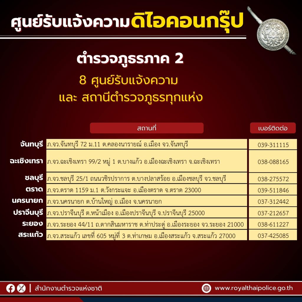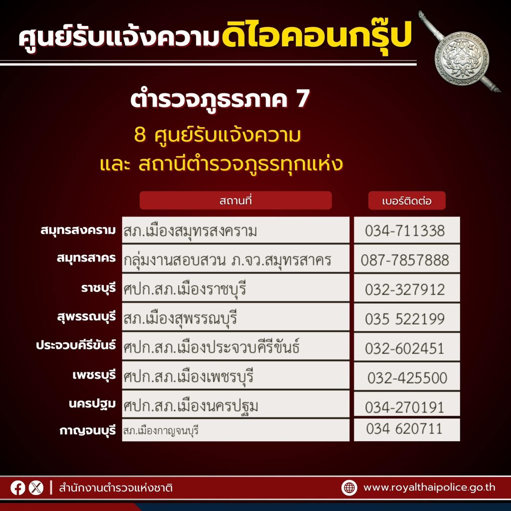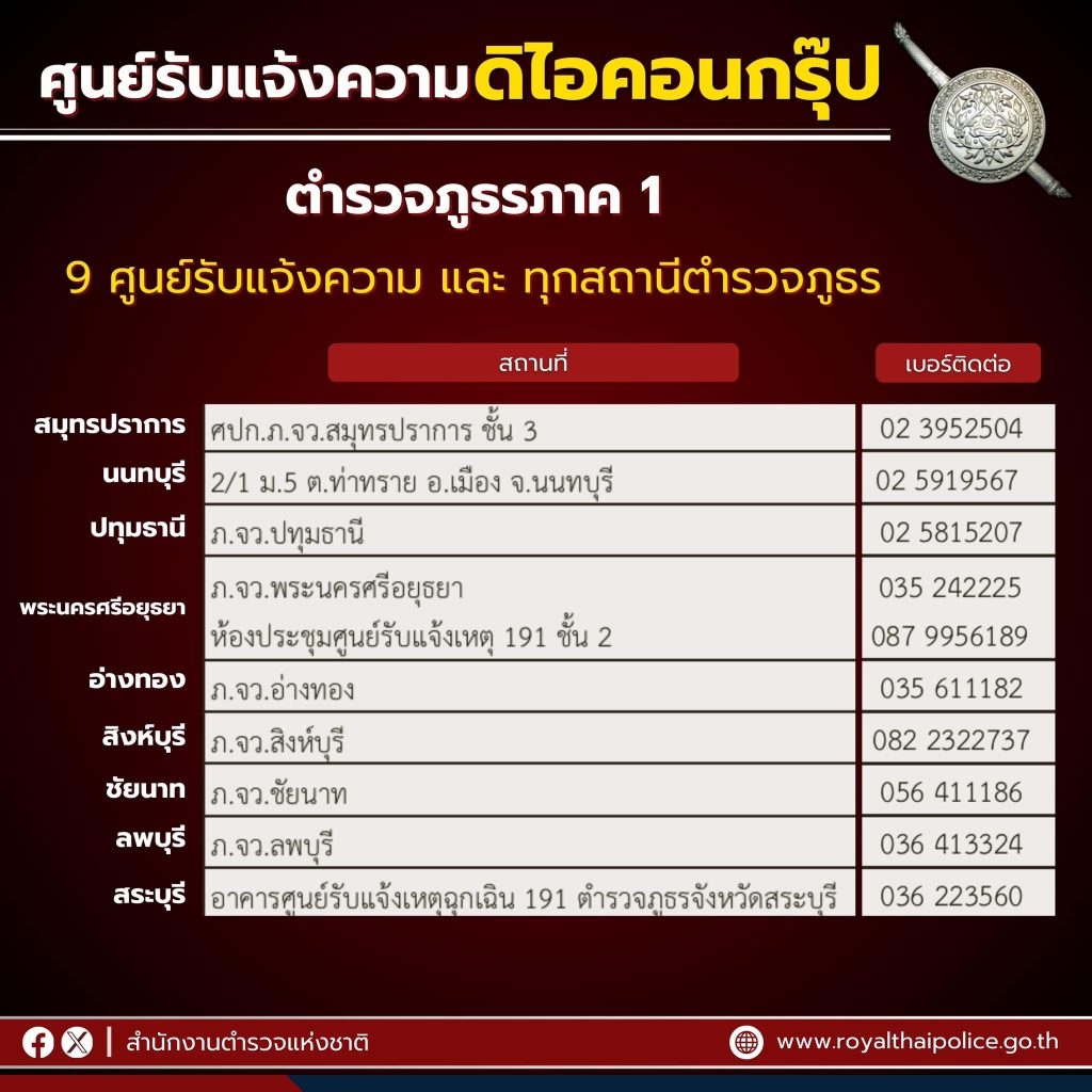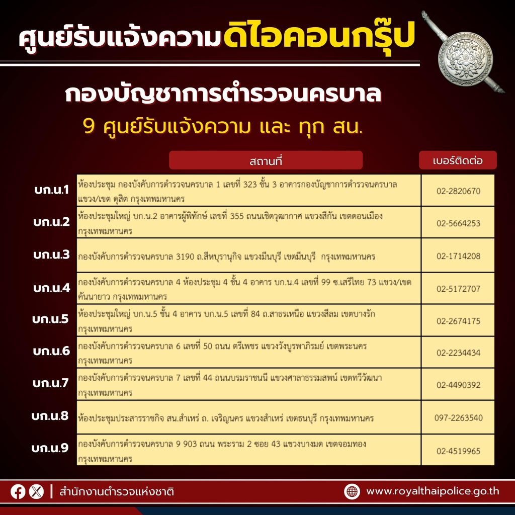 “ศูนย์รับแจ้งความ คดี THE iCON GROUP” ทั่วประเทศ 9 ศูนย์ใน กทม. พื้นที่ดูแลของกองบัญชาการตำรวจนครบาล และ 76 ศูนย์ ทุกจังหวัดในพื้นที่การดูแลของตำรวจภูธรภาค 1 – 9