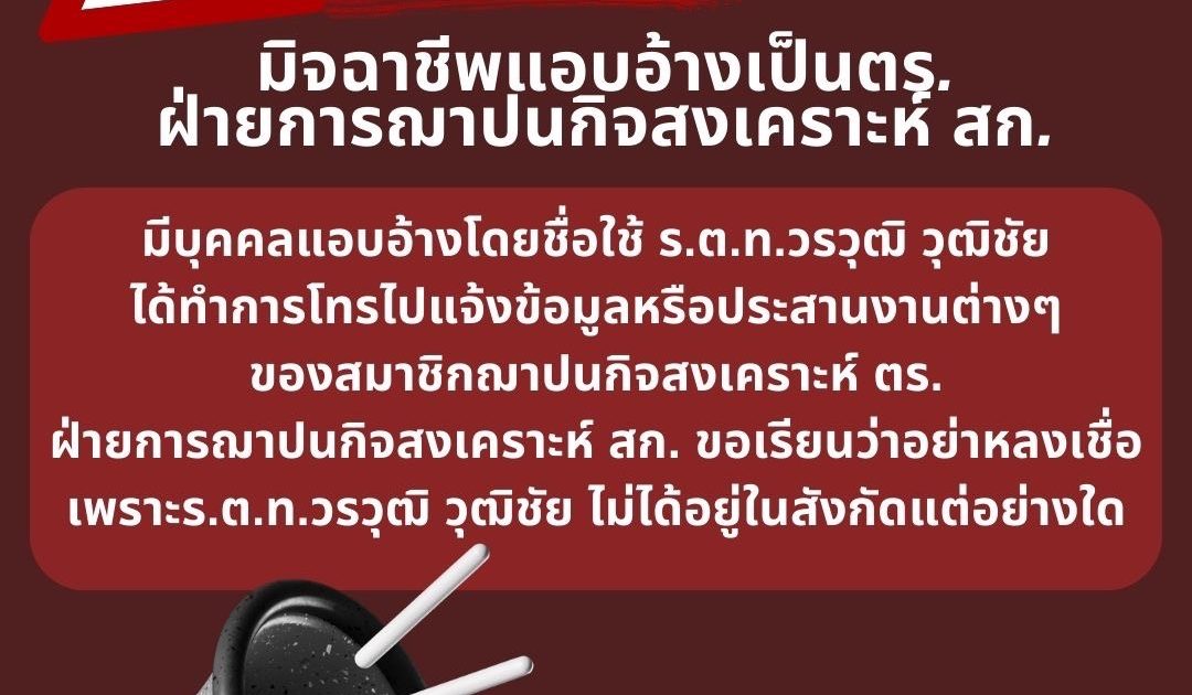 เตือนภัย มิจฉาชีพแอบอ้างเป็น ตร. ฝ่ายการฌาปนกิจสงเคราะห์ สภ.