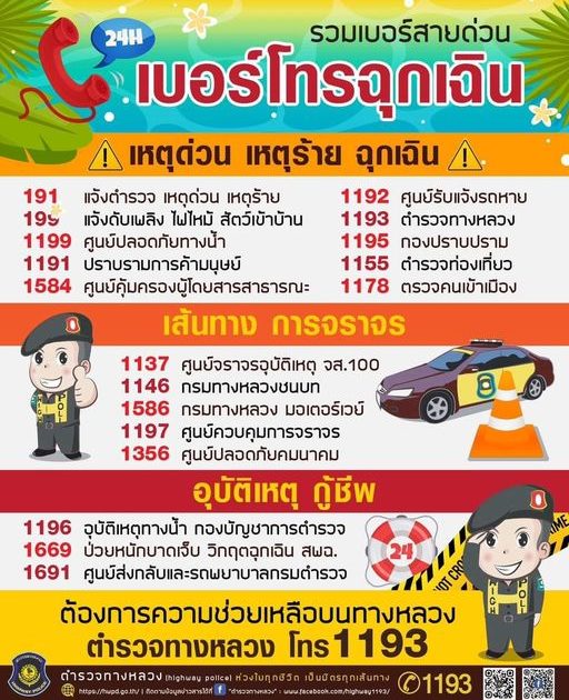 เบอร์โทรสำหรับเหตุด่วน เหตุฉุกเฉิน สามารถบันทึกไว้ในมือถือได้เลยครับ เผื่อเกิดเหตุโดยไม่คาดคิดครับ