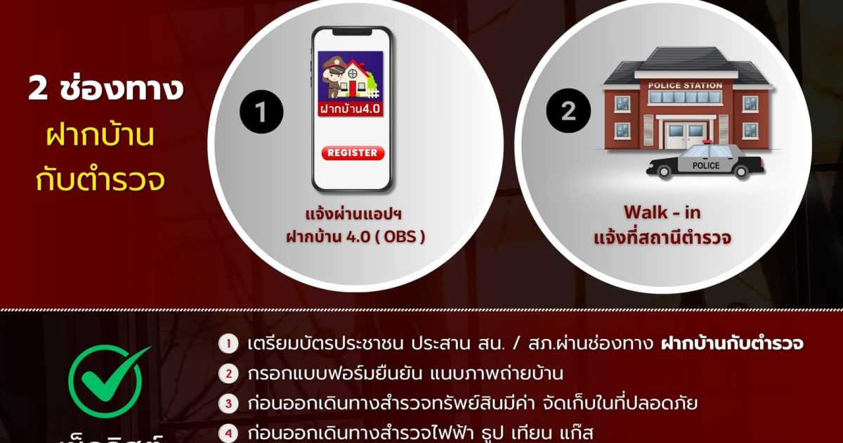 ✅ เตรียมบัตรประชาชน ประสาน สน. / สภ.ผ่านช่องทาง ฝากบ้านกับตำรวจ