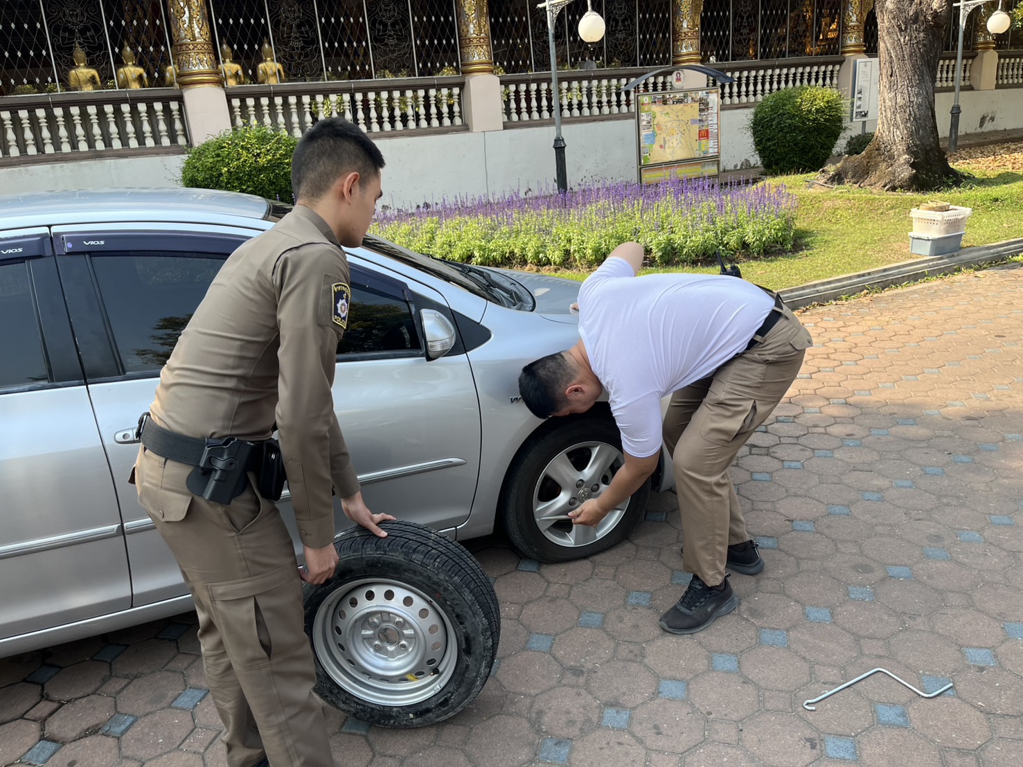 ภูพิงค์ฯ 20,201 สายตรวจ 124 พร้อมนสต.ฝึกงาน ว.4 ช่วยเหลือรถประชาชนยางรั่วภายในวัดสวนดอกช่วงนี้ดำเนินการช่วยเปลี่ยนยางรถให้ไปต่อได้เรียบร้อย