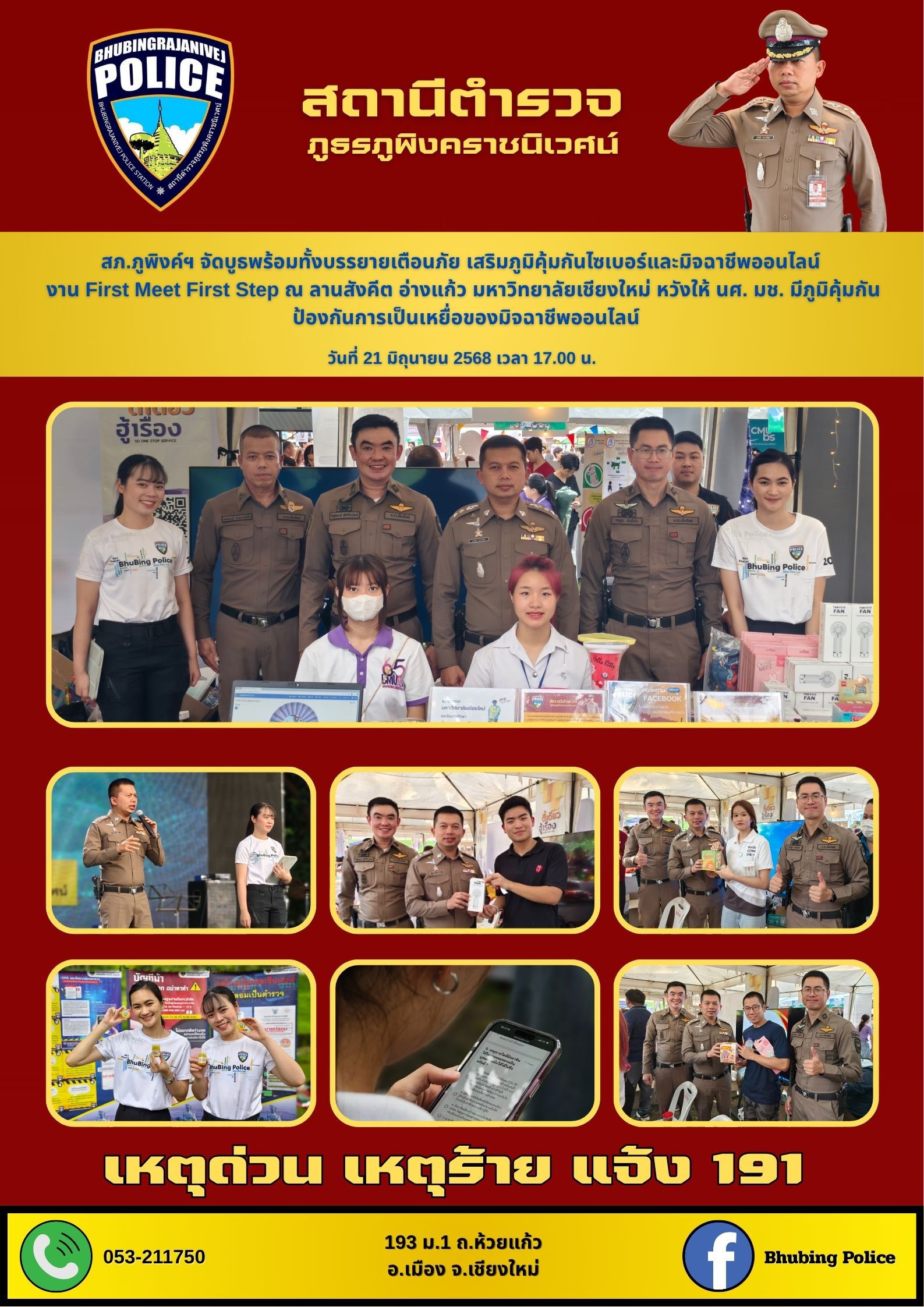 👉 ร่วมจัดบูธให้ความรู้และทำกิจกรรมเพื่อป้องกันอาชญากรรมออนไลน์ ภายในงาน First Meet First Step ✨ ระหว่างวันที่ 21 – 22 มิถุนายน 2568 ตั้งแต่เวลา 17:00 น. เป็นต้นไป