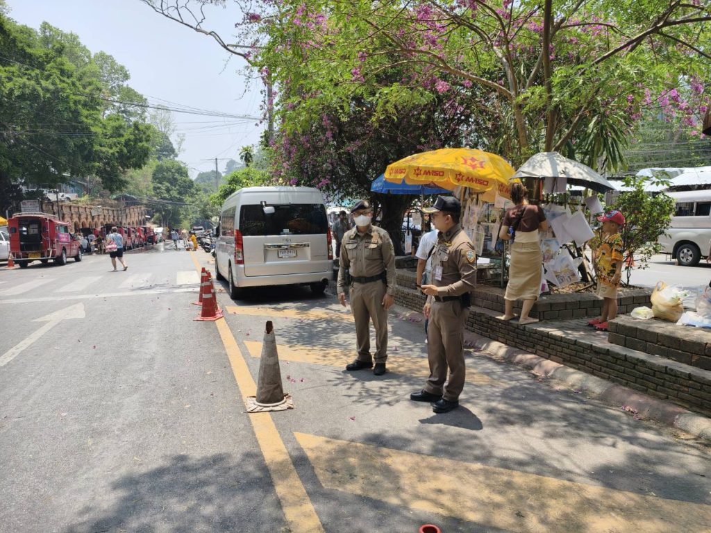 พบ ร.ต.ท.วิทิตย์ วุฒิคุณ และ ร.ต.ต.ภาดา ม่วงสวัสดิ์ เจ้าหน้าที่ตำรวจประจำหน่วยบริการประชาชนวัดพระธาตุดอยสุเทพ อยู่ปฏิบัติหน้าที่ด้วยความเรียบร้อยเหตุการณ์ปกติ