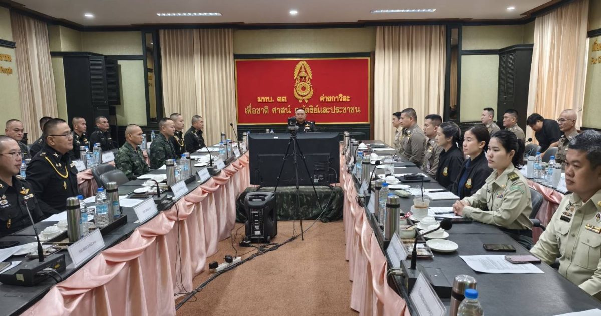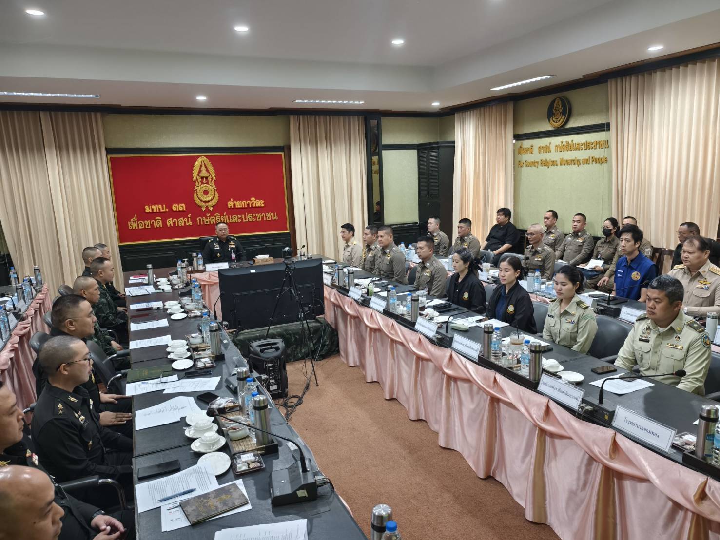 โดยมี พล.ต.ธำรงศักดิ์ บุญทักษ์ ผบ.มทบ.33/ผอ.กอร.ถปภ.ทภ.3 (มทบ.33) เป็นประธานที่ประชุม