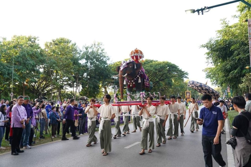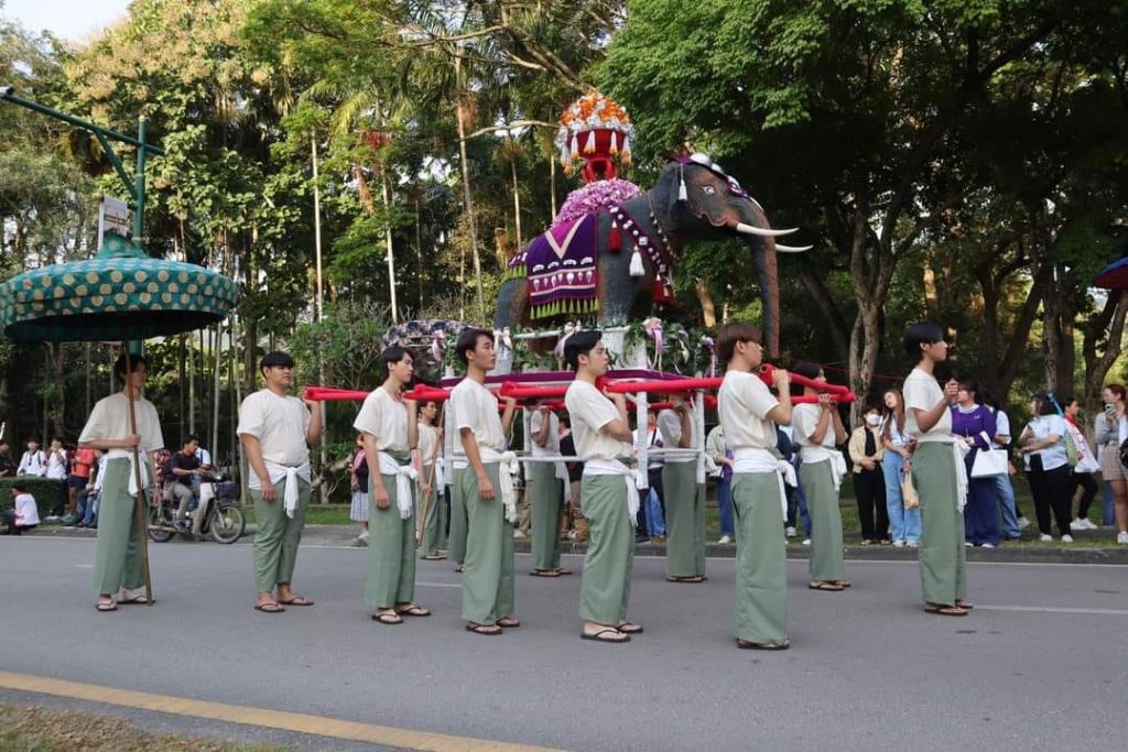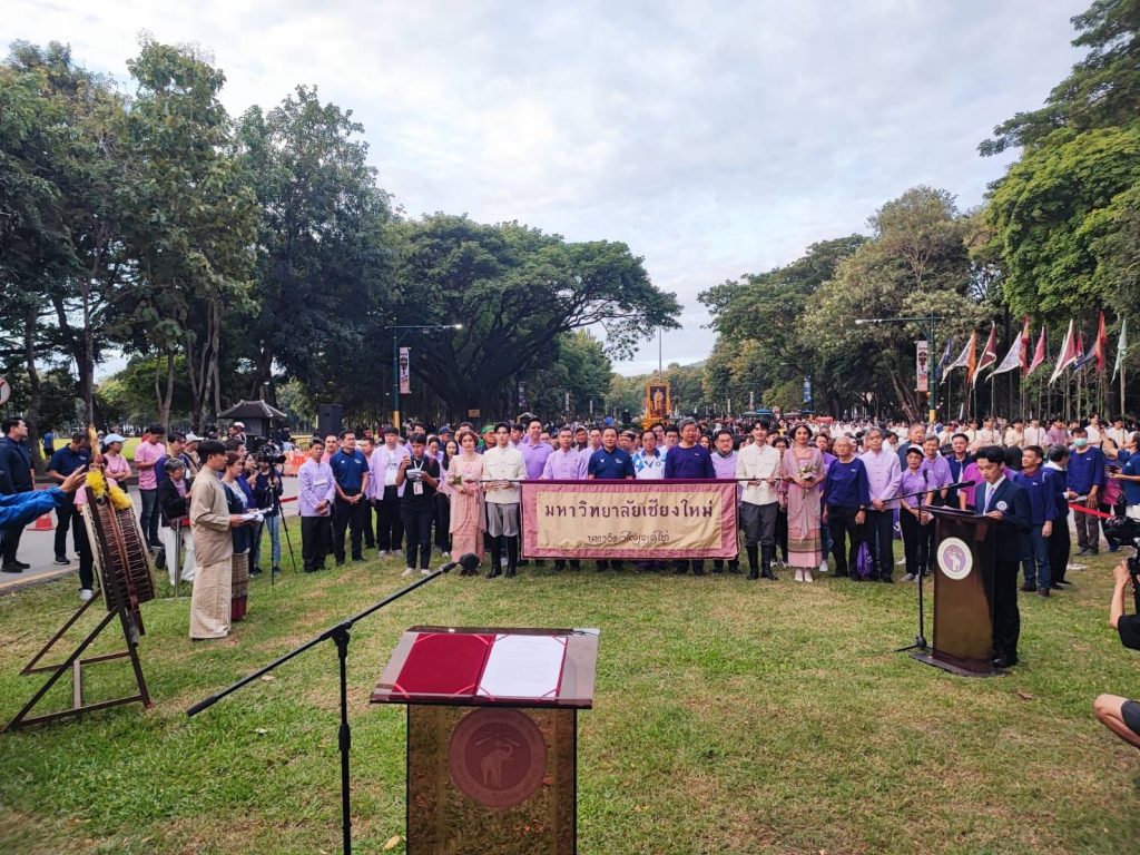 นำลูกช้าง 24 คณะ 1 สถาบันและศิษย์เก่า กว่า 30,000 คน ร่วมสืบสานประเพณีการนำน้องใหม่ไปนมัสการพระบรมธาตุดอยสุเทพ “รับน้องขึ้นดอย” ในวันที่ 18 พฤศจิกายน 2566