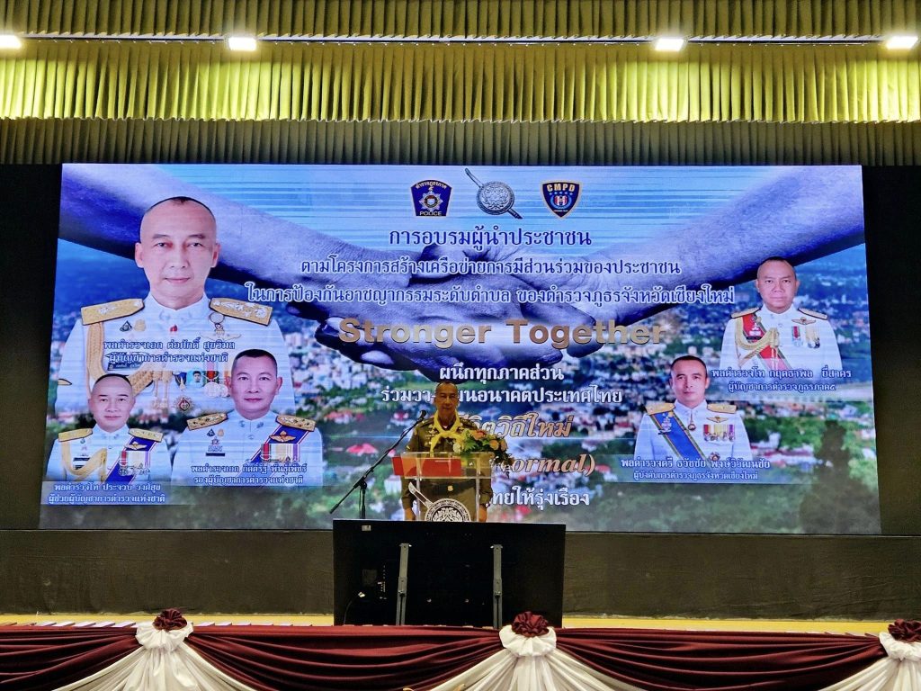 โดยมี พล.ต.ต.ธวัชชัย พงษ์วิวัฒนชัย ผบก.ภ.จว.เชียงใหม่เป็นผู้กล่าวรายงาน ผู้เข้าอบรมประกอบด้วย ข้าราชการตำรวจภูธรจังหวัดเชียงใหม่ 21 สภ. ประชาชนจากหลากหลายสาขาอาชีพ ที่มีบทบาทในชุมชน ที่อาศัยและประกอบอาชีพอยู่ในพื้นที่จังหวัดเชียงใหม่ จำนวน 1050 คน