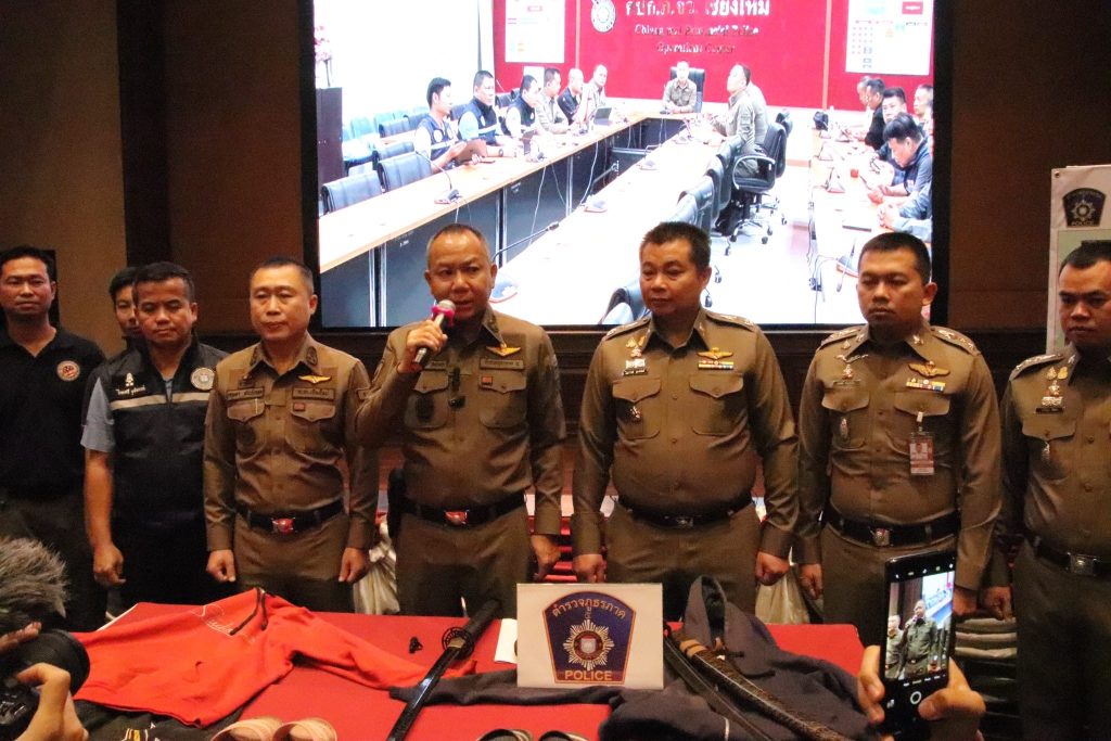 และผู้ที่เกี่ยวข้อง ร่วมกันแถลงข่าว ณ ห้องประชุมพระพุทธประทานยศบารมี ตำรวจภูธรภาค 5 อำเภอเมืองเชียงใหม่ จังหวัดเชียงใหม่